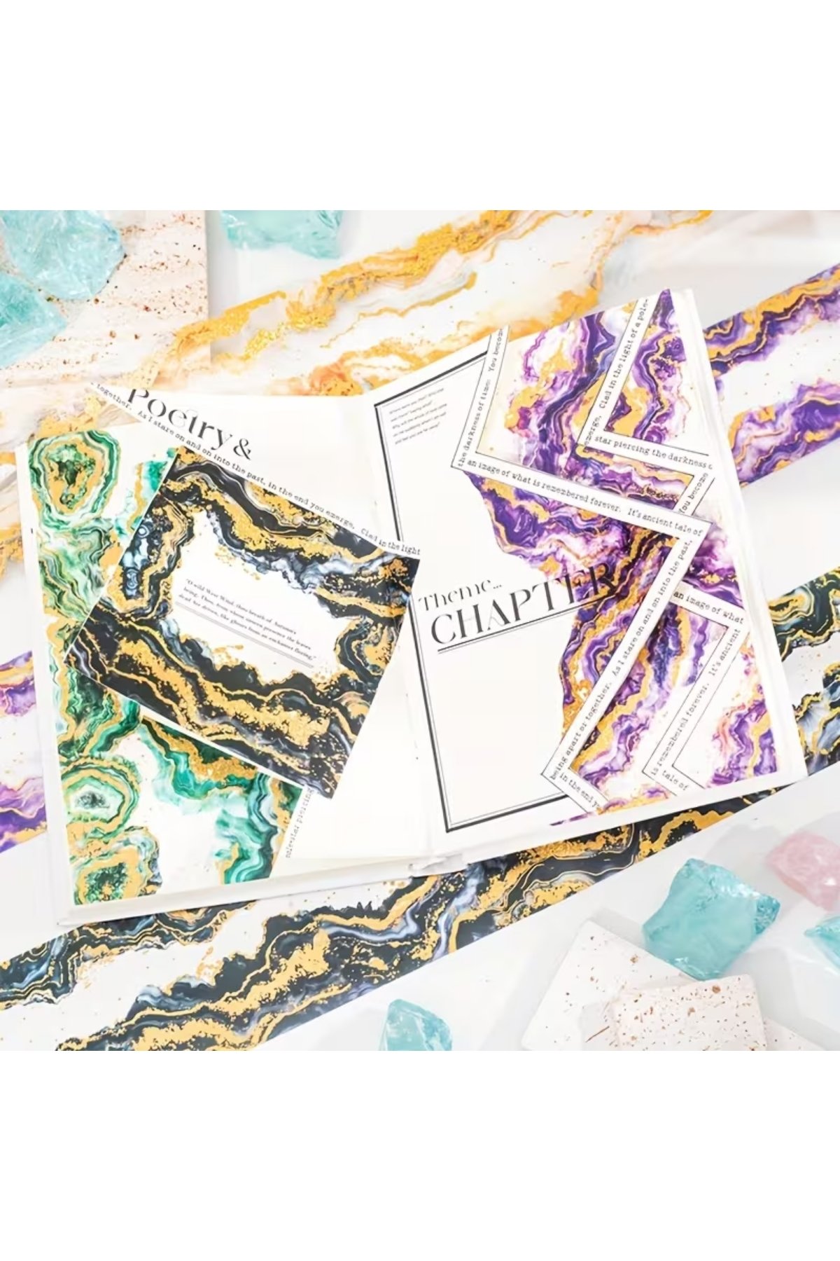 1 Rulo Şeffaf Altın Yaldızlı Mermer Desen Bant 6.5cmx2m Scrapbook Bullet Journal Ajanda Washi Tape