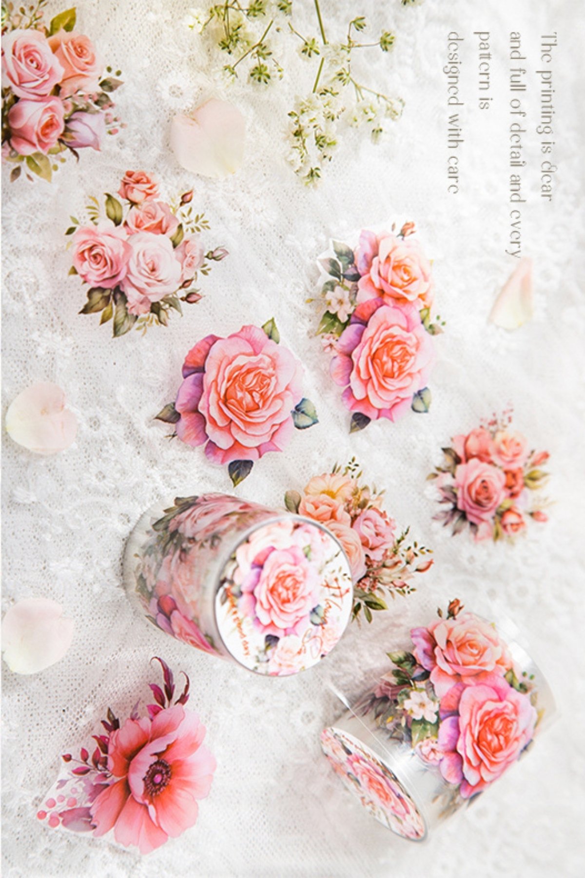1 Rulo Şeffaf Pembe Gül Pet Bant Kesimli 5cmx2m Scrapbook Bullet Journal Ajanda Washi Tape