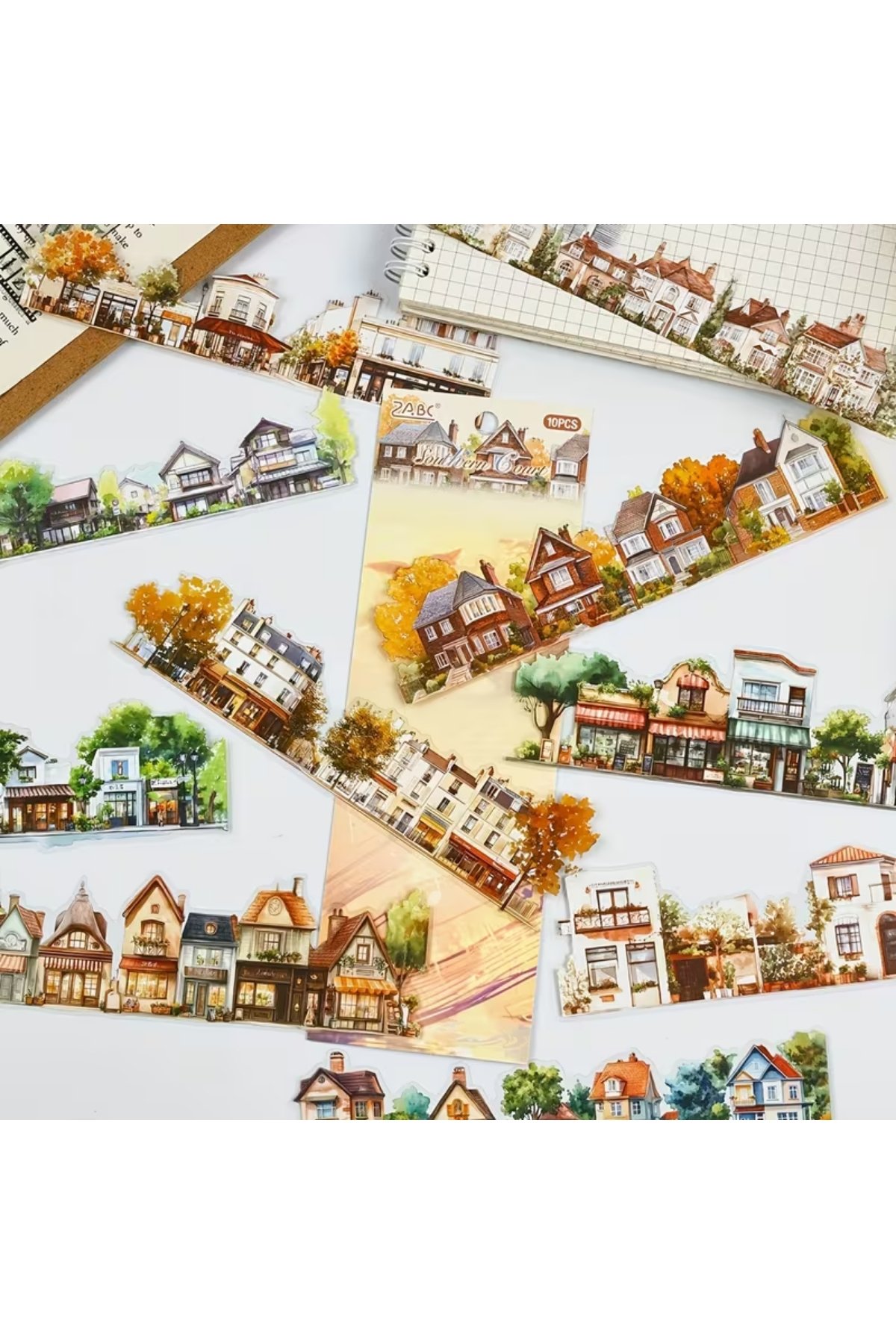 10 Adet Büyük Şeffaf Köy Manzara Sticker Bullet Journal Scrapbook Ajanda Laptop Şerit