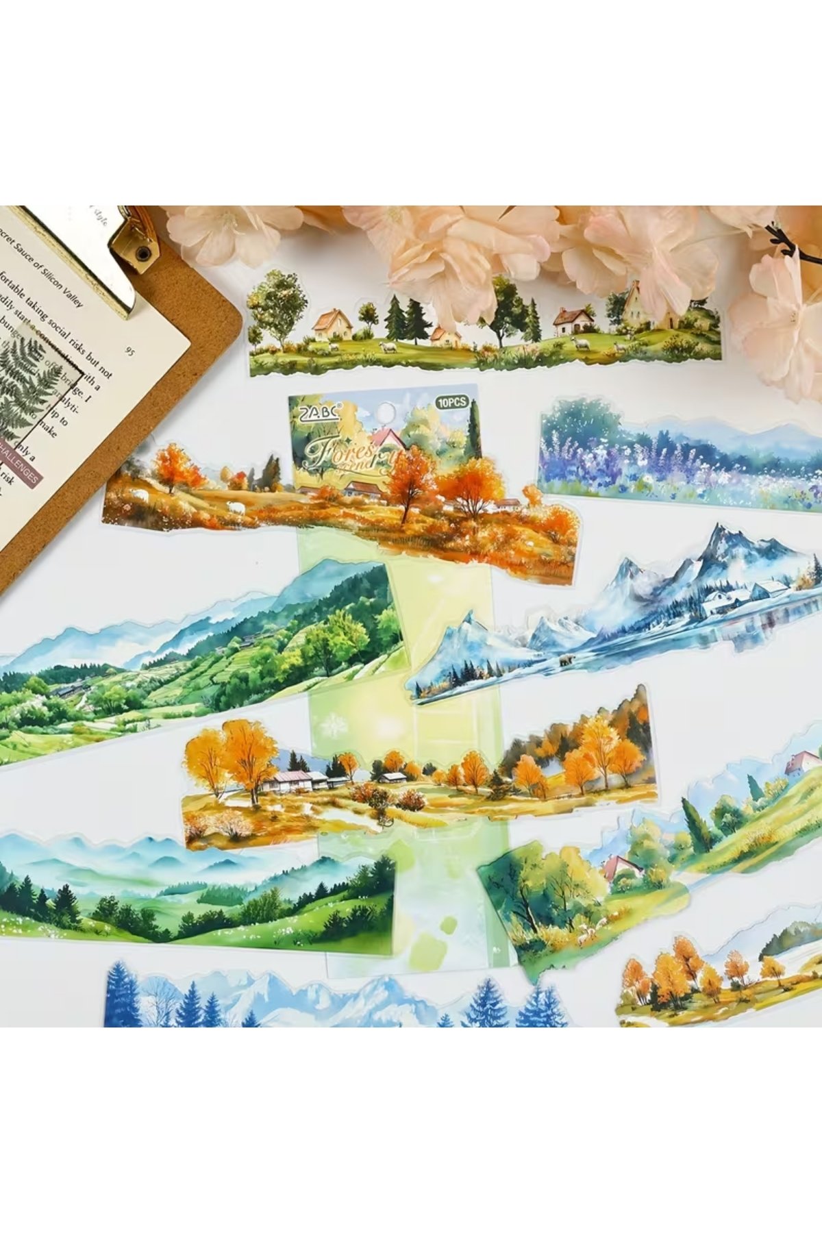 10 Adet Büyük Şeffaf Manzara Sticker Bullet Journal Scrapbook Ajanda Laptop Şerit