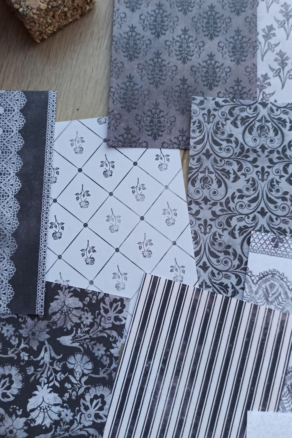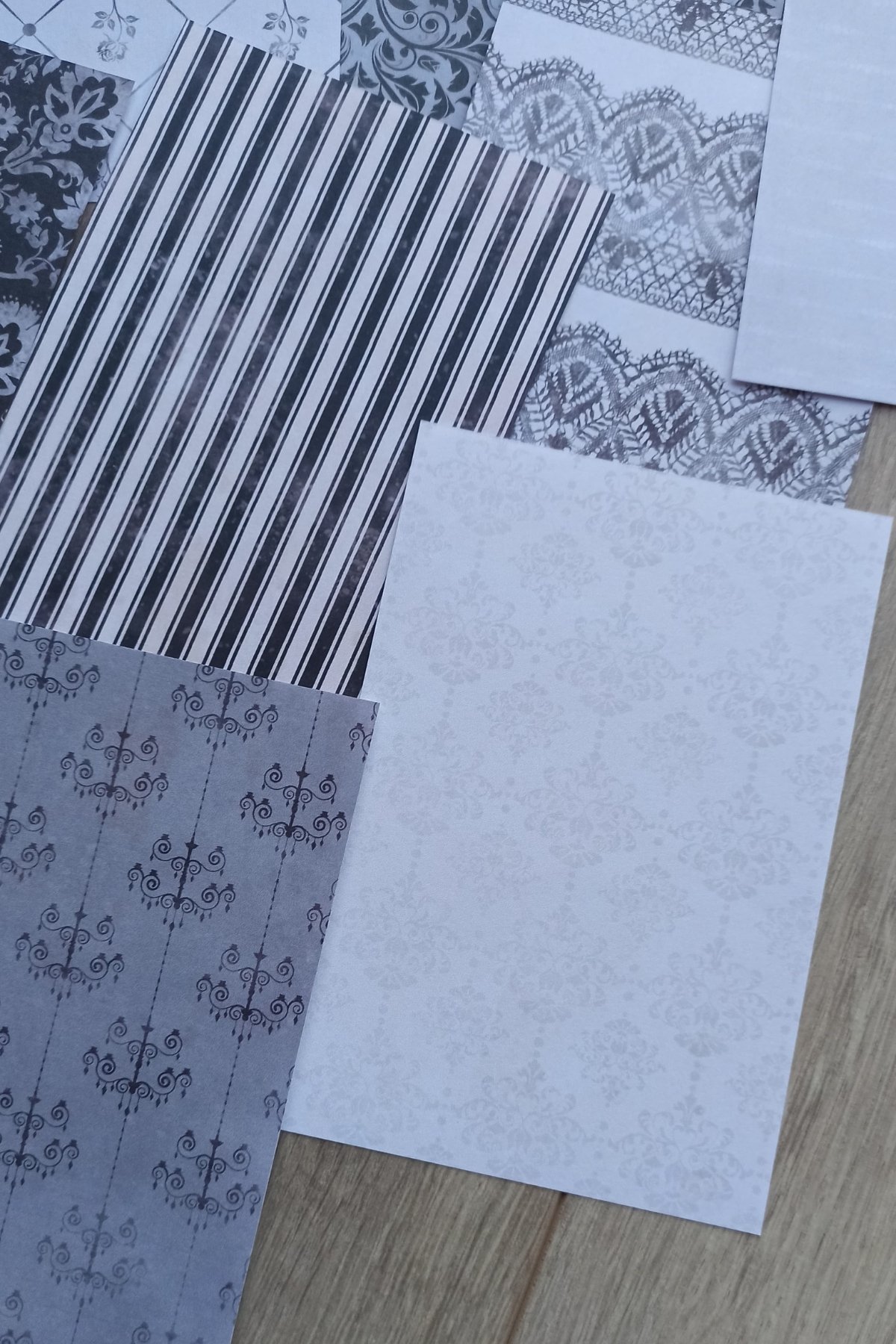Siyah ve beyaz desenleriyle dikkat çeken bu kağıt seti, yaratıcı projelerinizde şık bir dokunuş sağlar