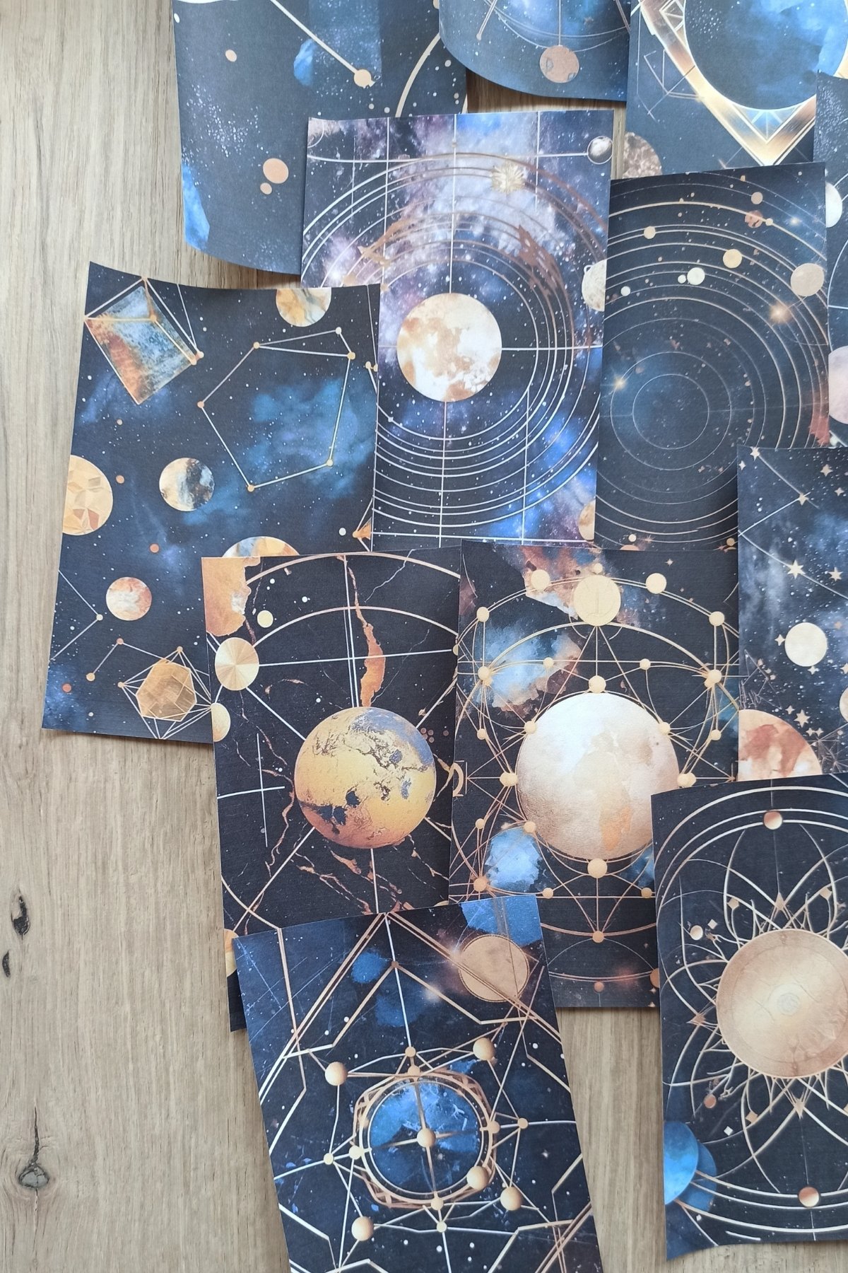 12 Adet Uzay Temalı Scrapbook Kağıt Seti Bullet Journal Dekupaj Kağıdı
