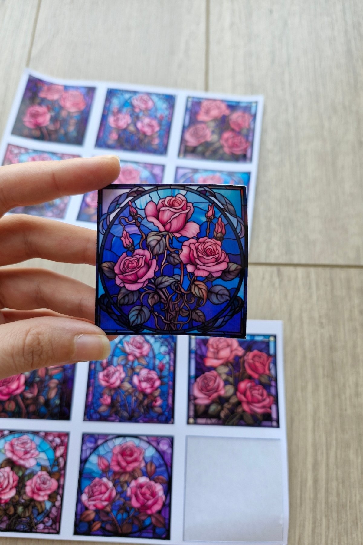Kare formatındaki stickerlar, laptop termos gibi çeşitli yüzeylere kolayca yapışır ve kalıcıdır