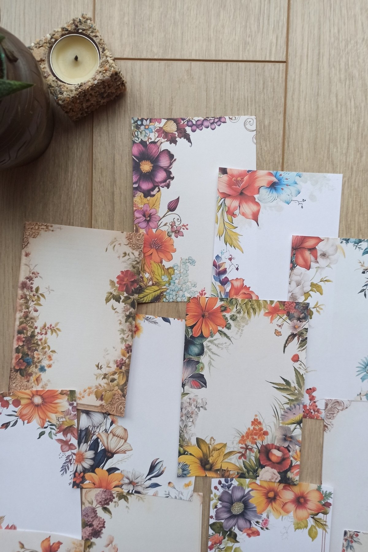 “15 Adet Eskitme Vintage Çiçek Temalı Scrapbook Kağıt Seti Bullet Journal Dekupaj Kağıdı” için yorum yapan ilk kişi siz olun
