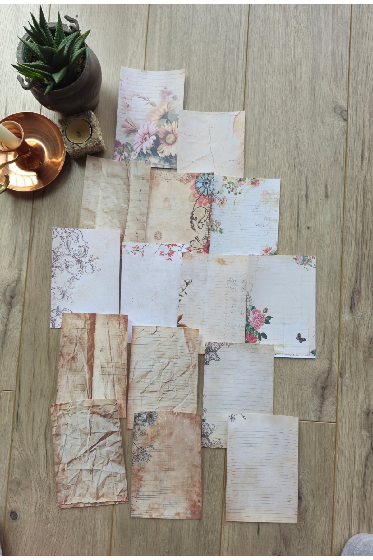 Kağıt çiçek temalı bu set, yaratıcılığınızı ifade etmenize olanak tanırken, vintage dokunuşlarıyla dikkat çeker
