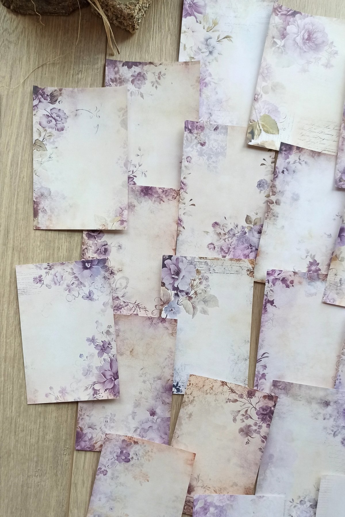 Vintage esintili lila renkli scrapbook kağıtları, yaratıcılığınızı serbest bırakmanız için ideal bir zemin sunar