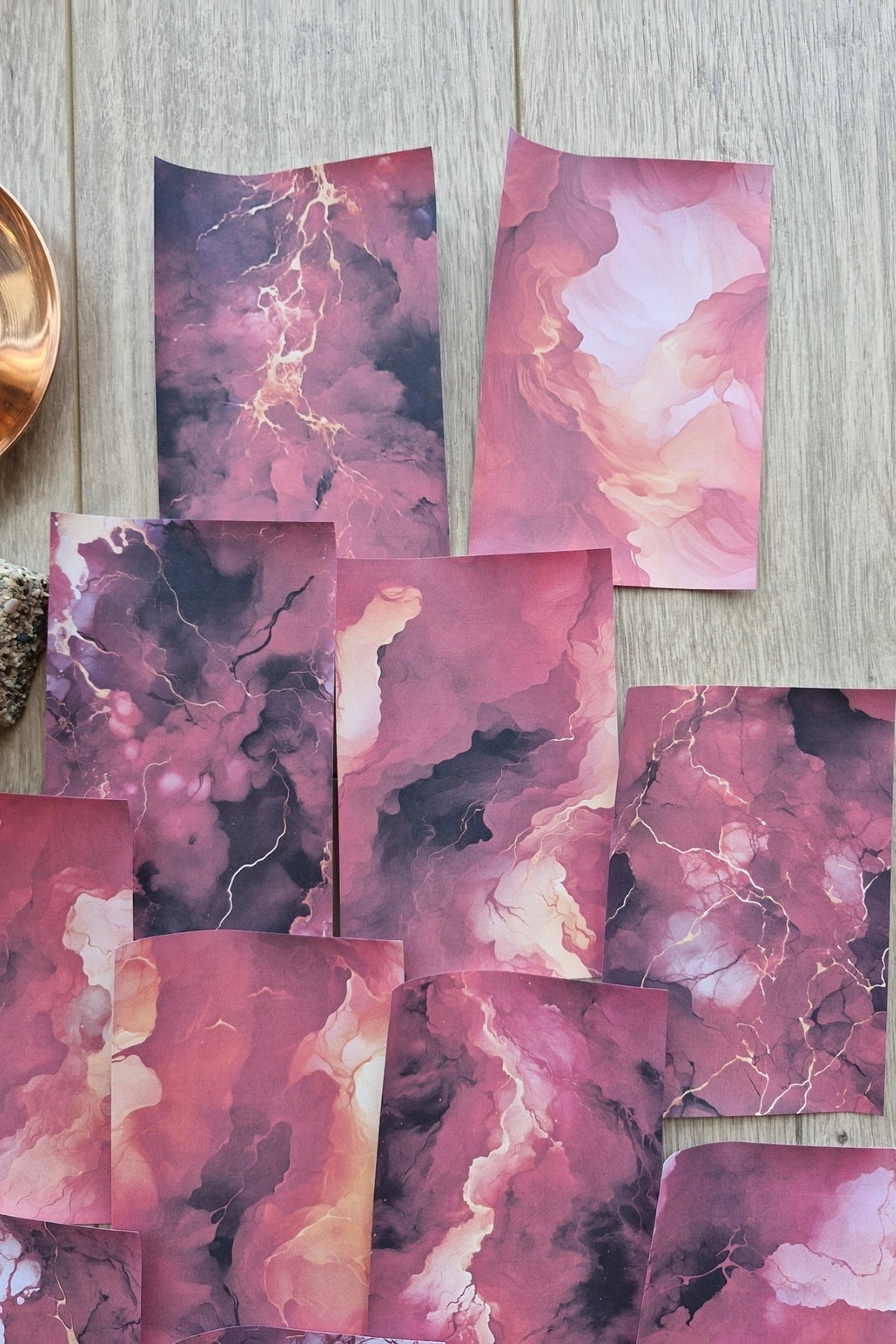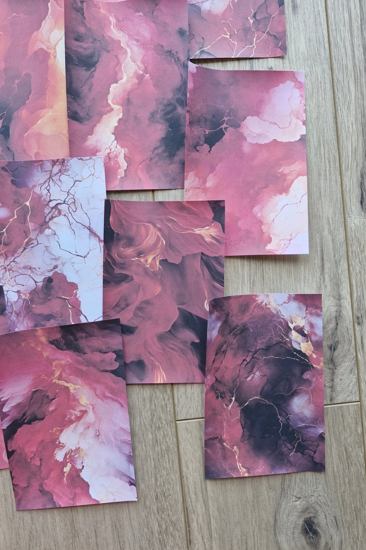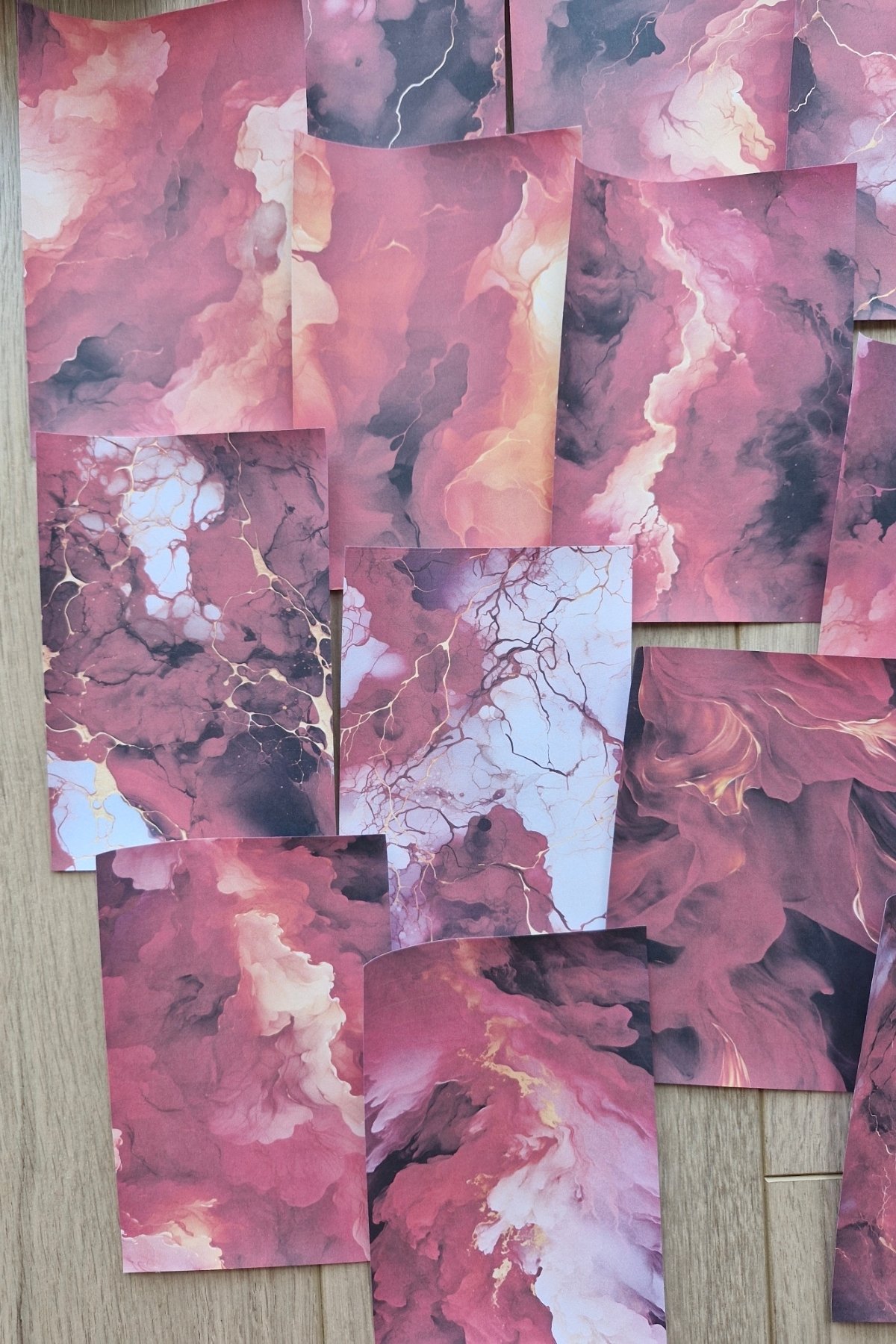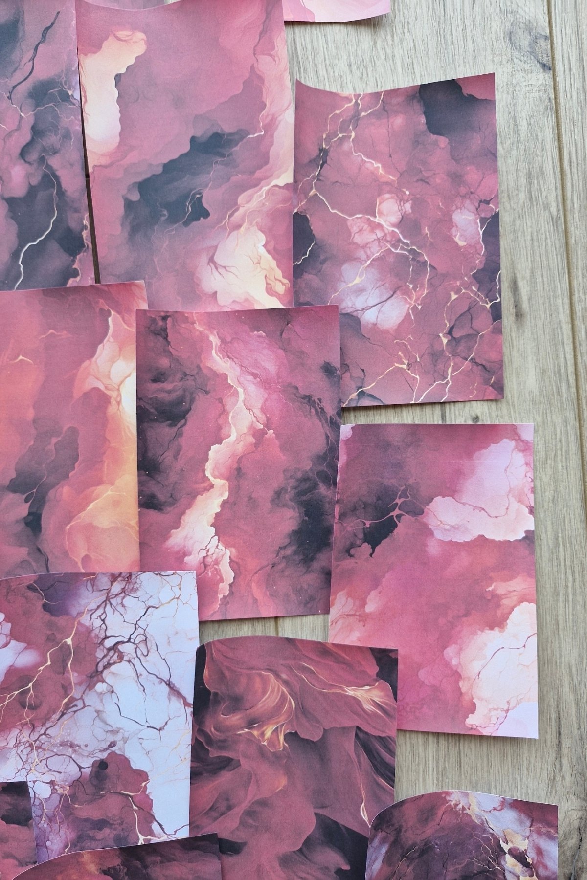 Duman mermer deseniyle dikkat çeken bu kağıtlar, scrapbook sayfalarınıza modern ve şık bir görünüm kazandırır
