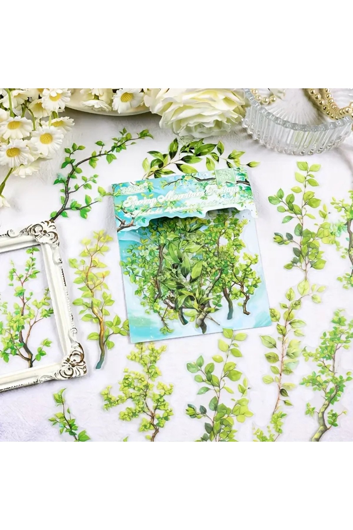 20 Adet Şeffaf Yeşil Yaprak Dal Sticker Bullet Journal Scrapbook Laptop Ajanda Planlayıcı