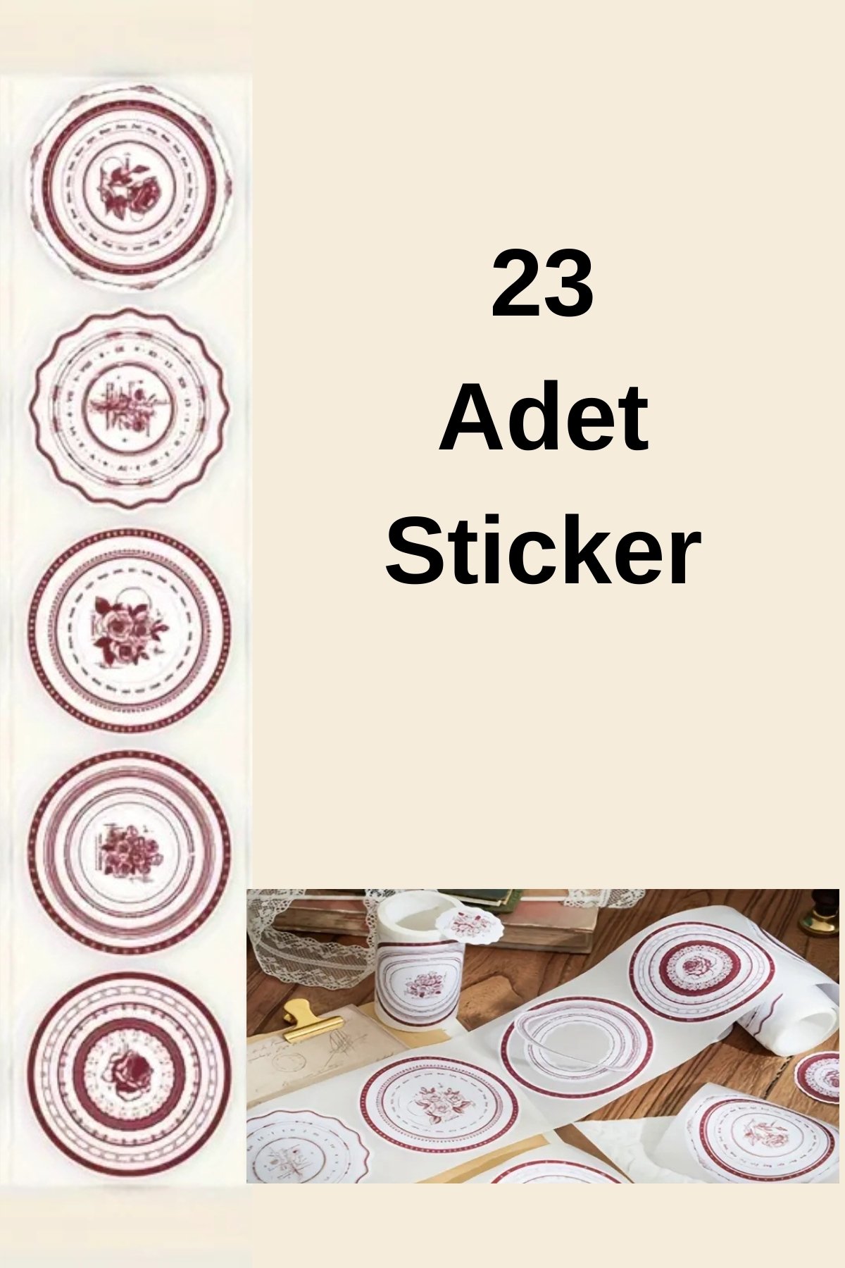 23 Adet Kırmızı Gül Temalı Halka Sticker Mat Scrapbook Bullet Journal Ajanda
