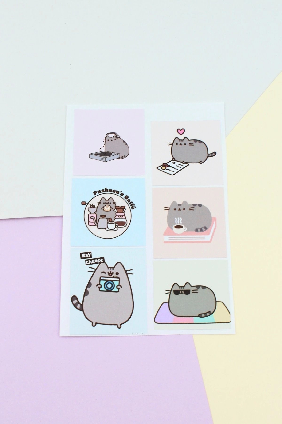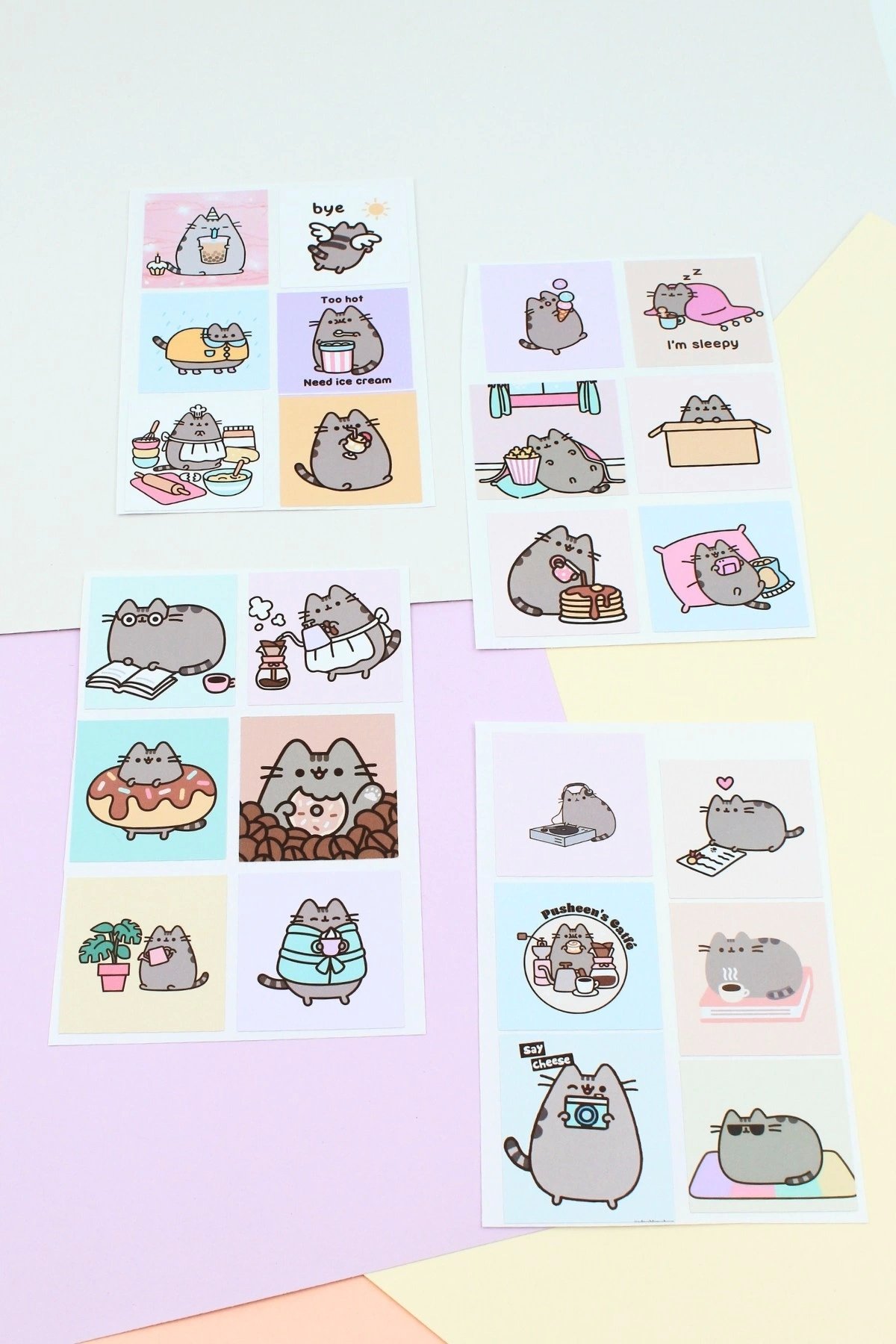 24 Adet Pusheen The Cat Sticker Sevimli Sticker Kare Sticker Laptop Sticker Kedi Sticker Sanrio Stic