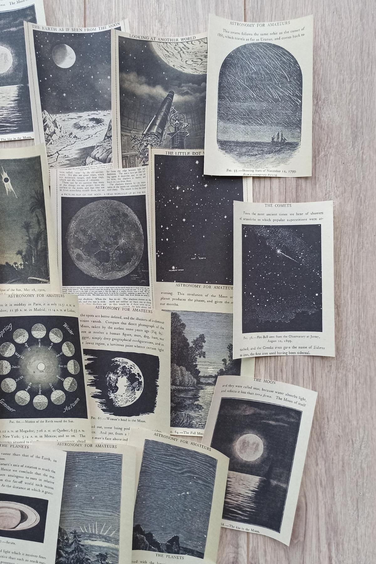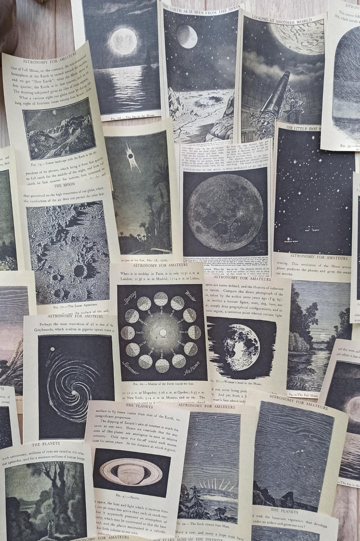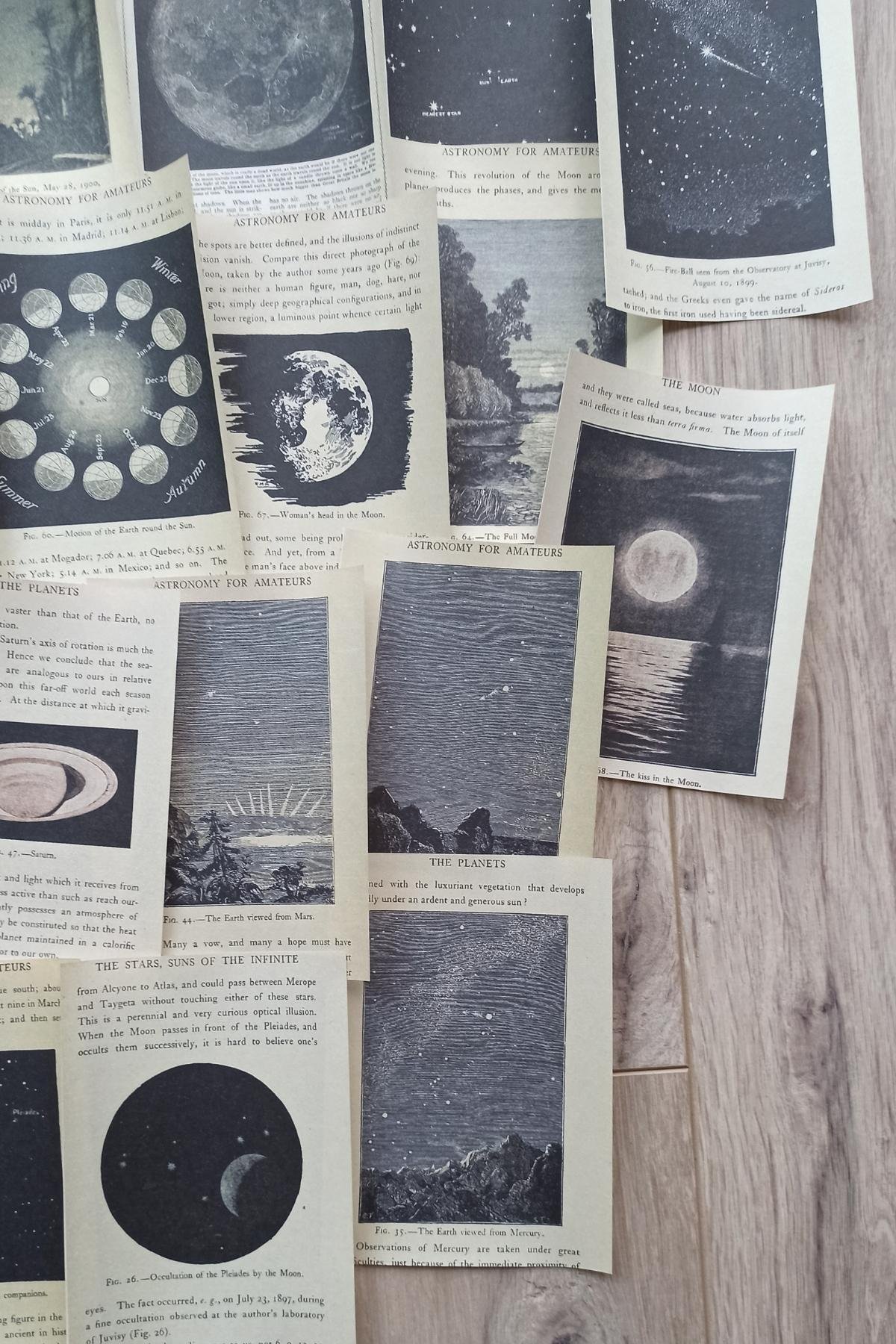 Uzay temalı scrapbook kağıtları, retro ve vintage tasarımıyla dikkat çeker