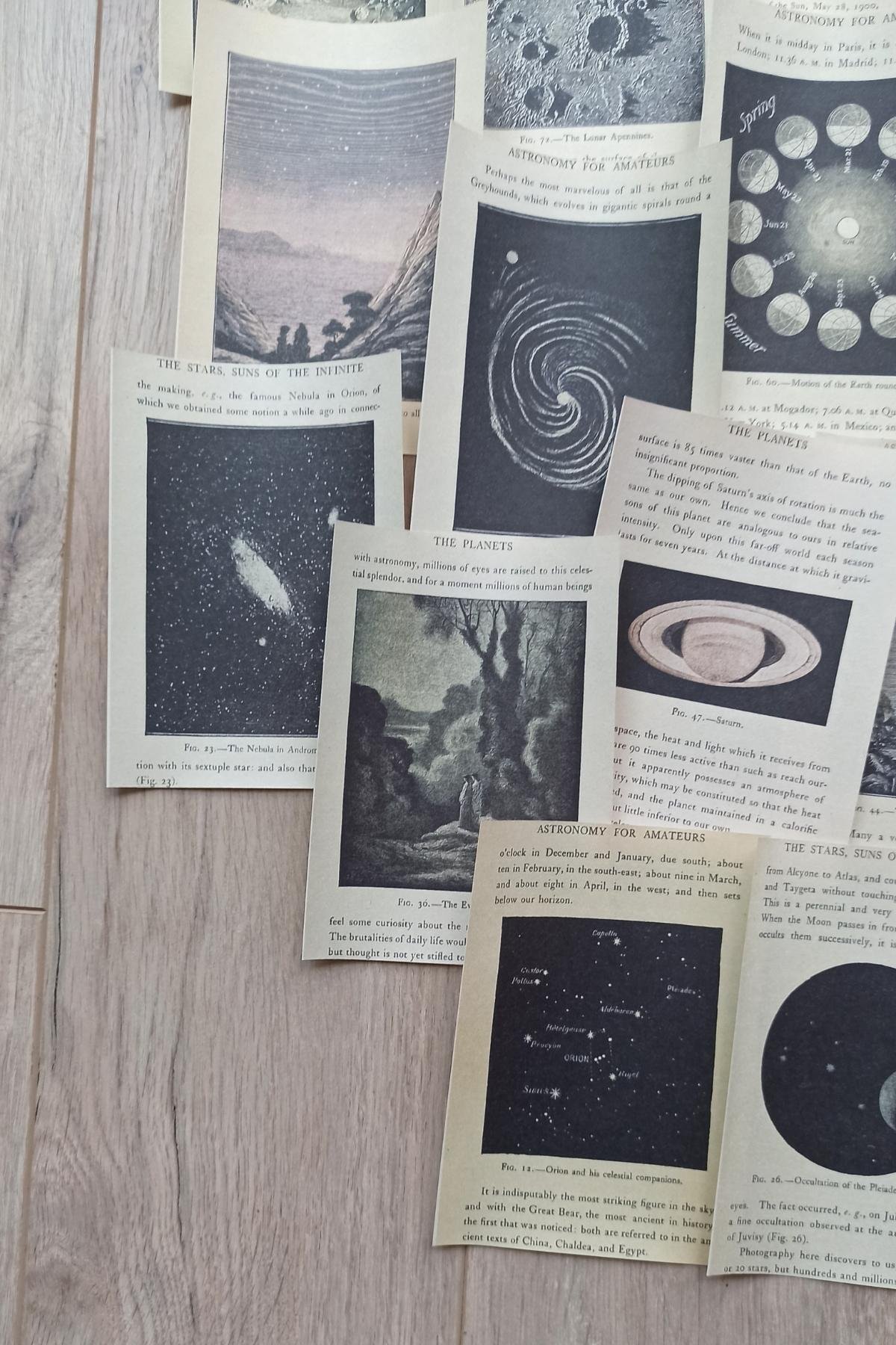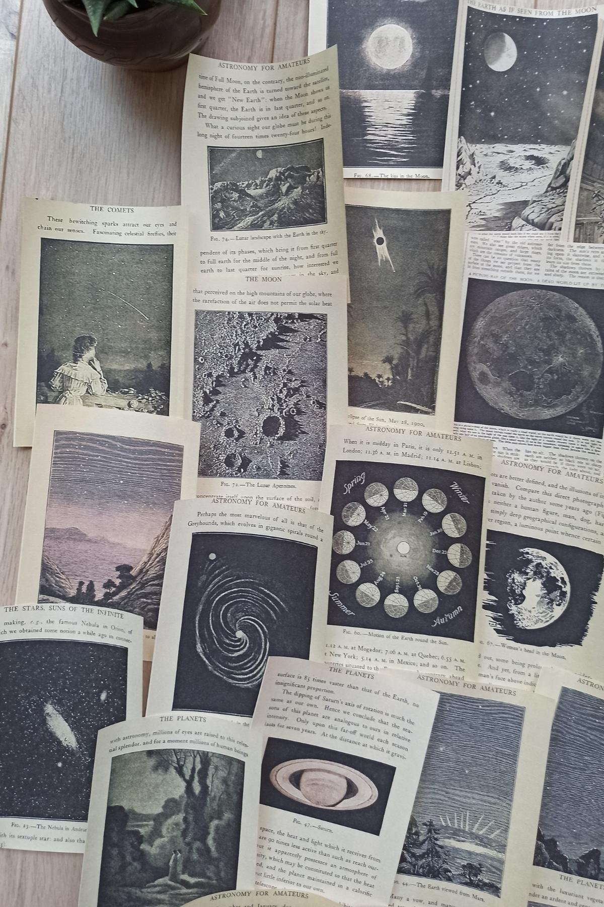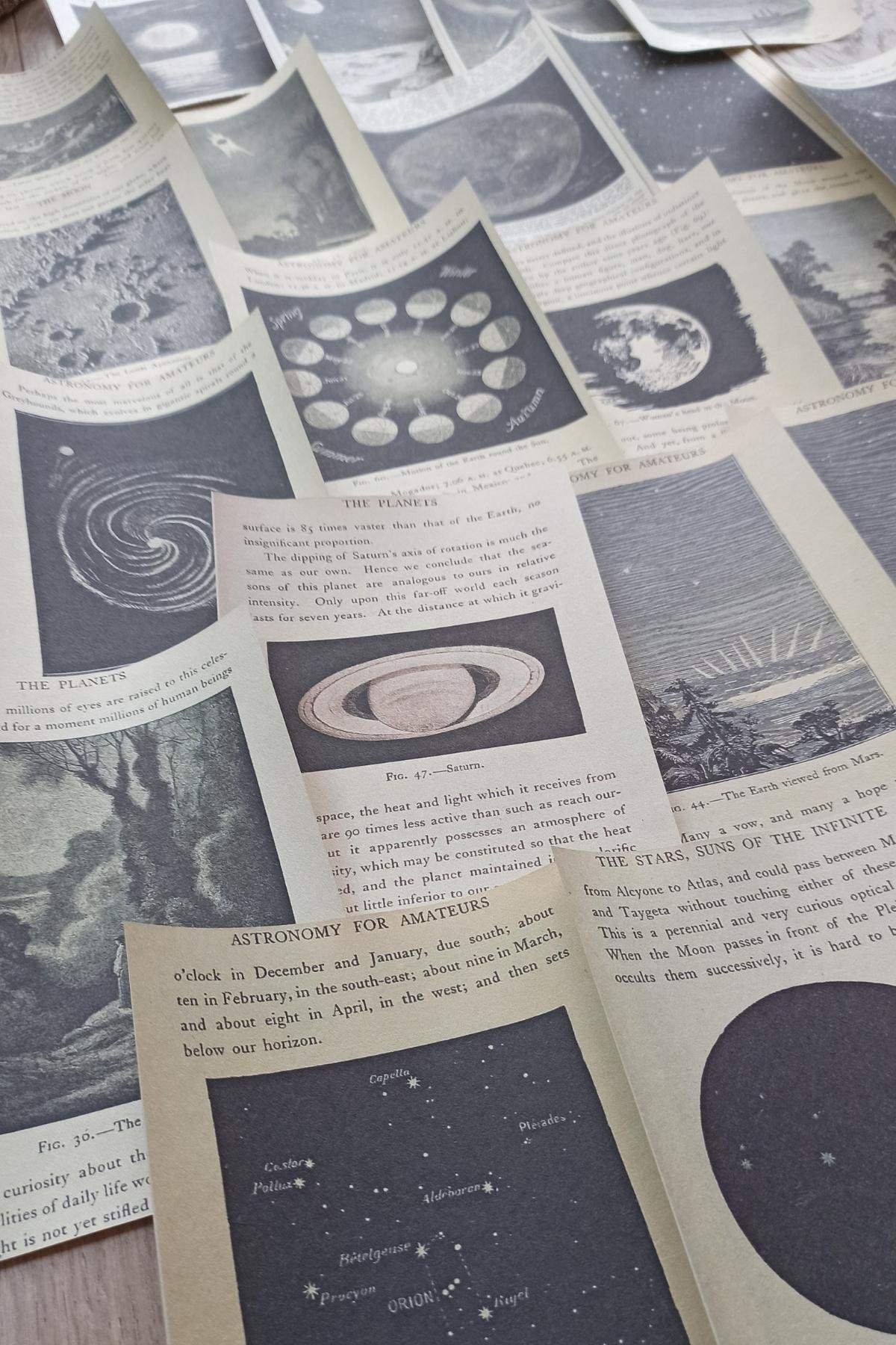 Uzay temalı scrapbook kağıtları, retro ve vintage tasarımıyla dikkat çeker