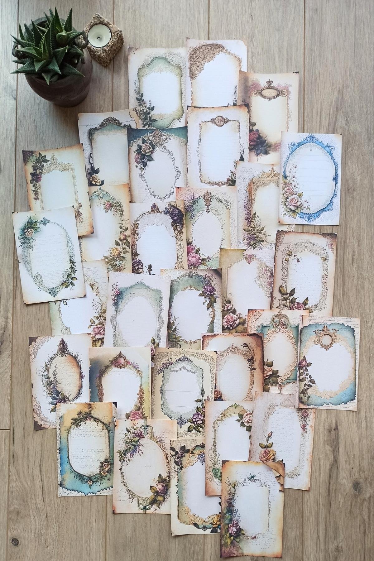30 Adet Eskitme Vintage Çerçeve Temalı Scrapbook Kağıt Seti Bullet Journal Dekupaj Kağıdı