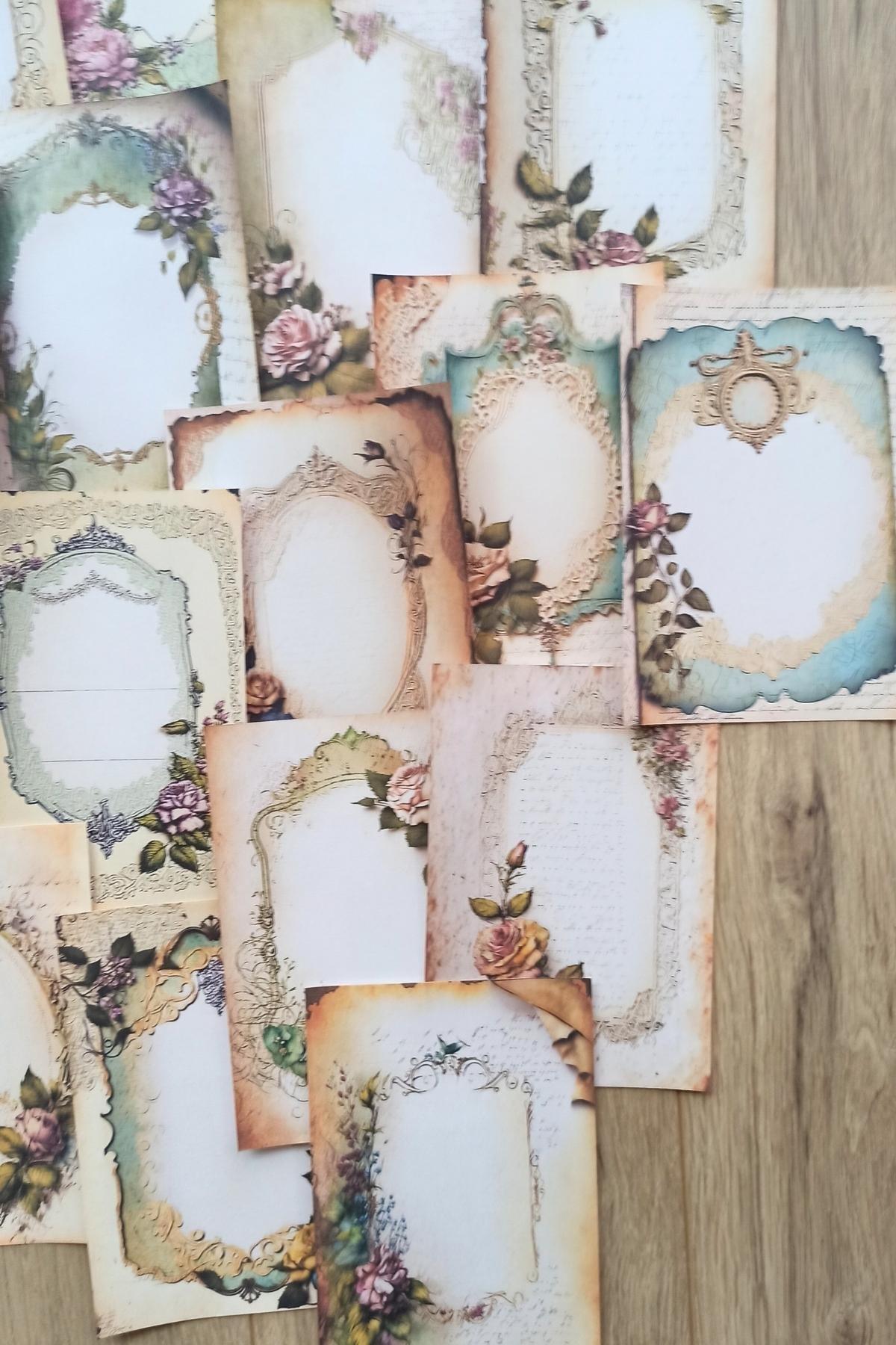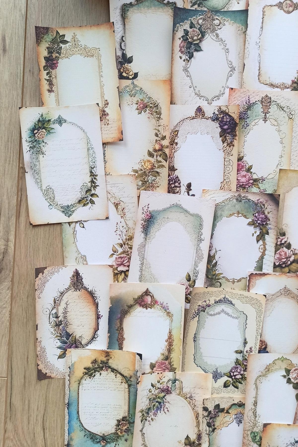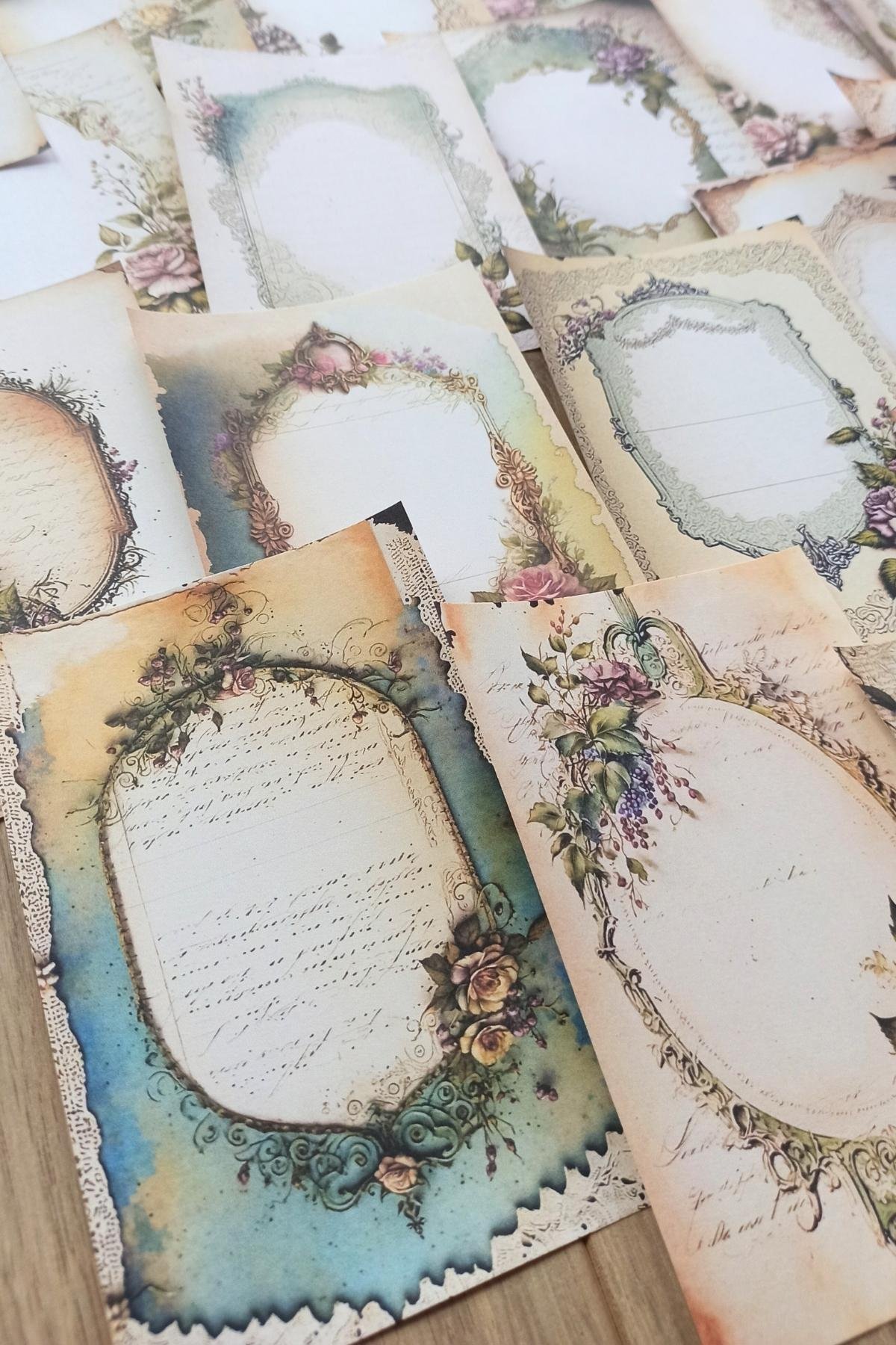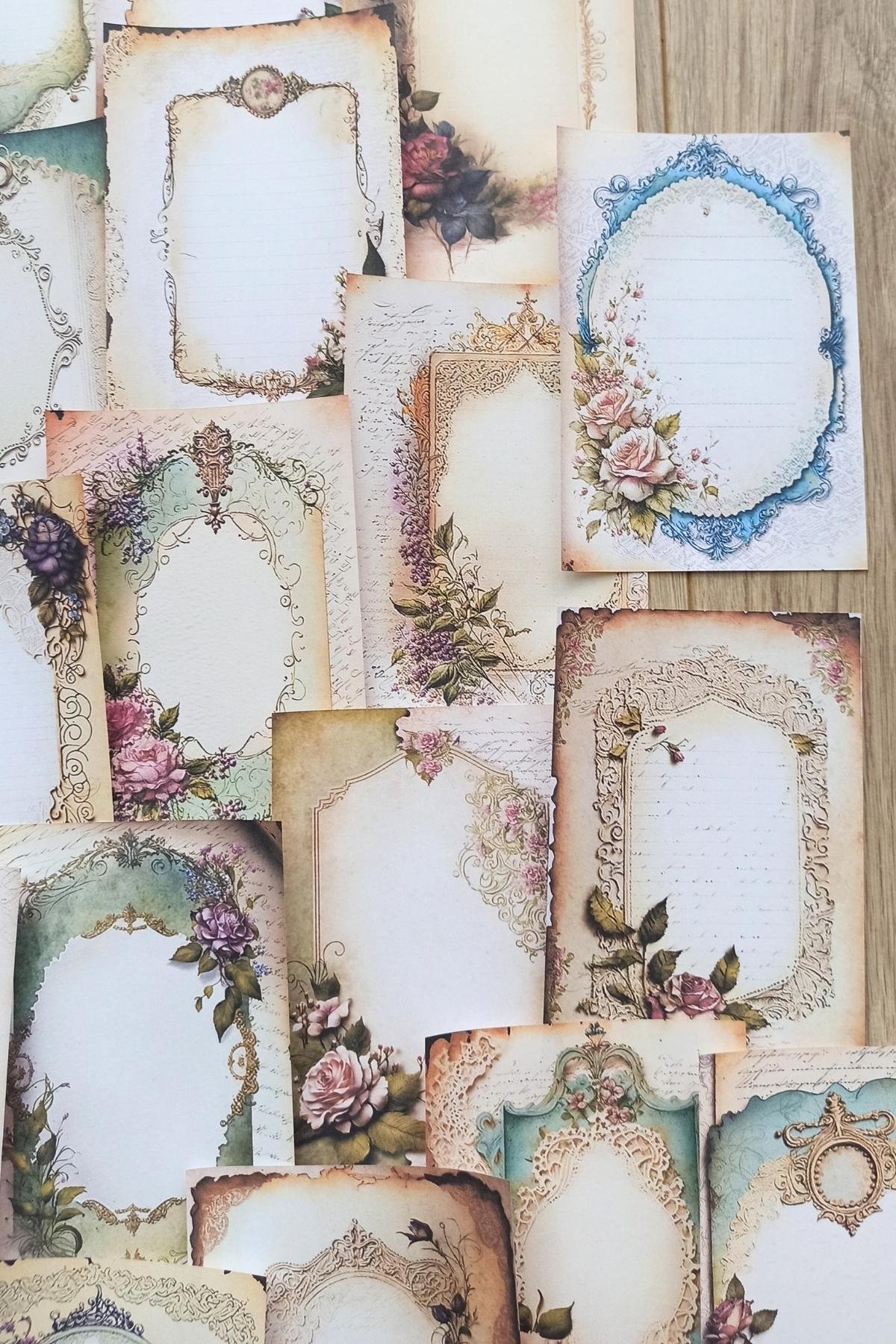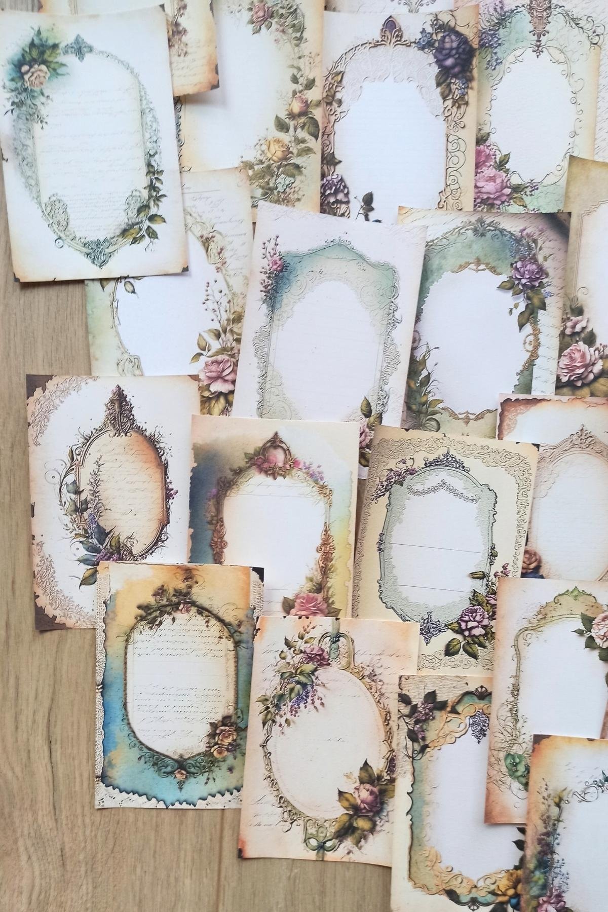 Eskitme vintage çerçeve temalı scrapbook kağıdı seti, yaratıcı projelerinizde nostaljik bir dokunuş katmak için idealdir