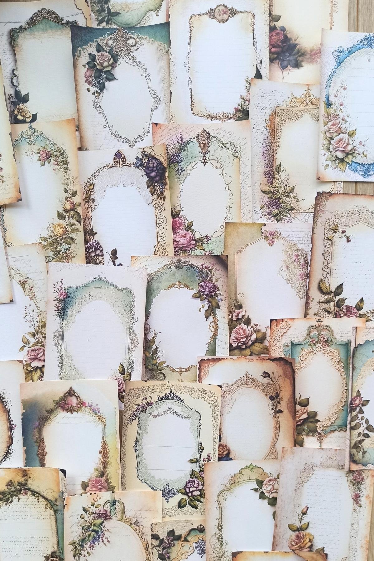 “30 Adet Eskitme Vintage Çerçeve Temalı Scrapbook Kağıt Seti Bullet Journal Dekupaj Kağıdı” için yorum yapan ilk kişi siz olun