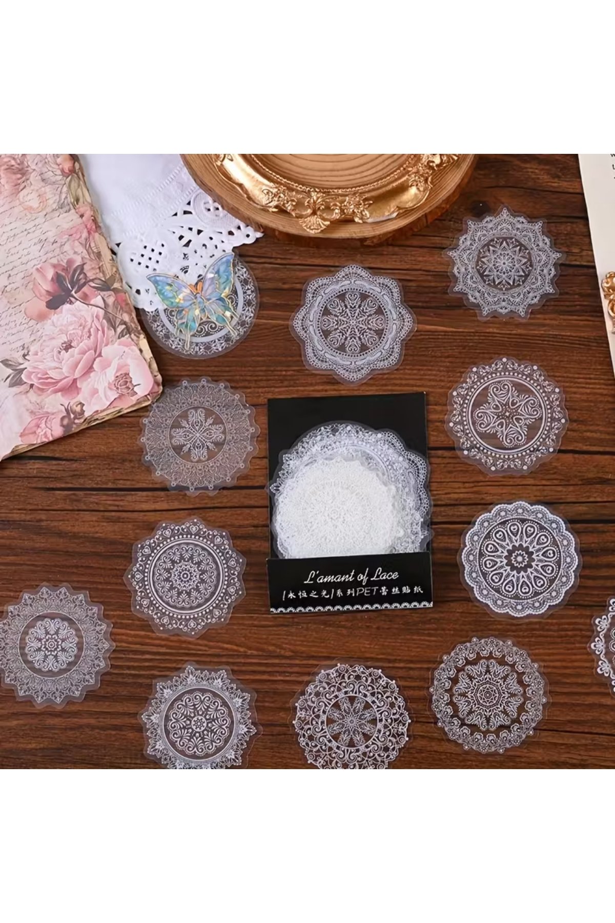 30 Adet Şeffaf Beyaz Mandala Dantel Desen Sticker Bullet Journal Scrapbook Laptop Ajanda Planlayıcı