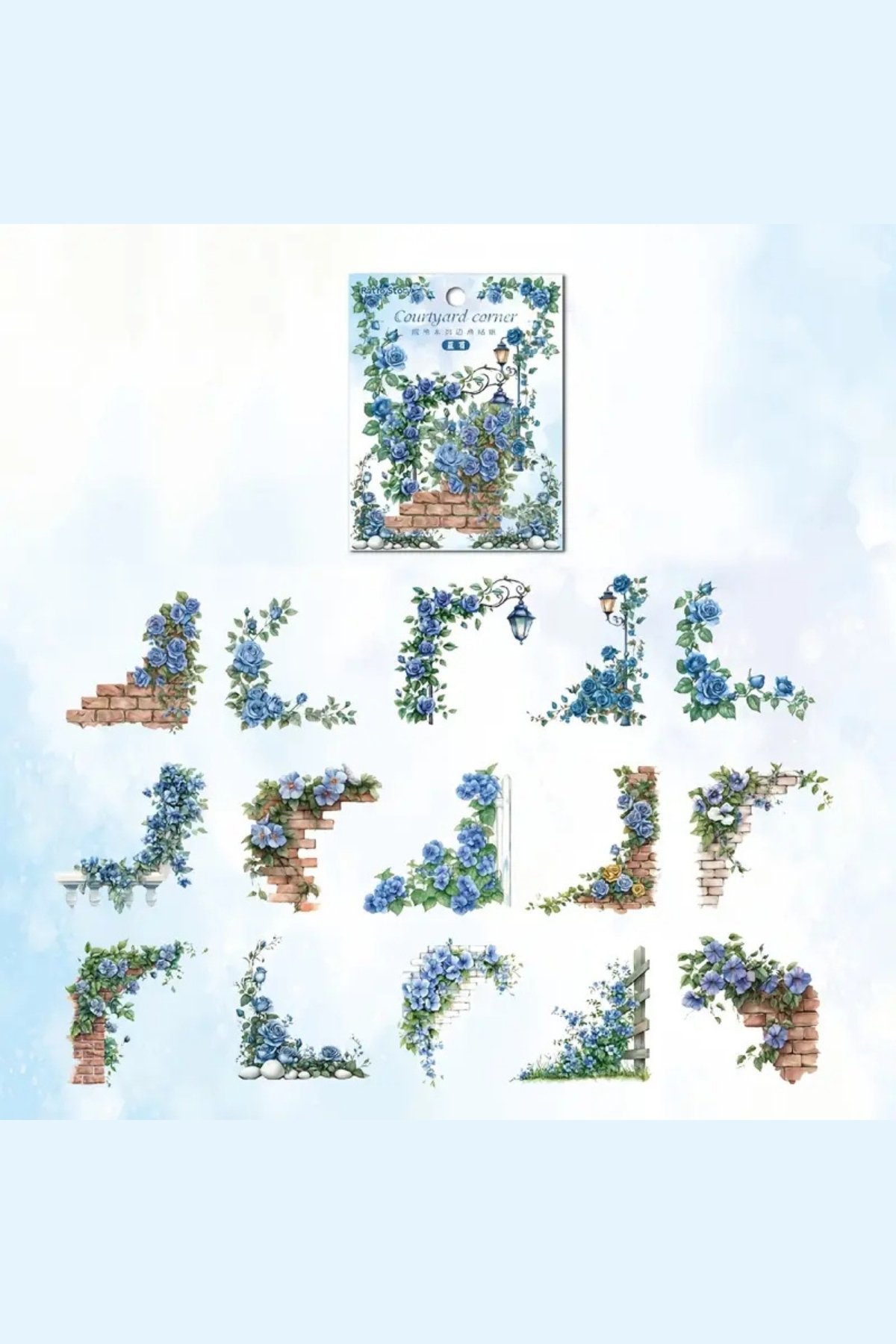 30 Adet Şeffaf Mavi Gül Kenar Sticker Bullet Journal Scrapbook Laptop Ajanda Planlayıcı