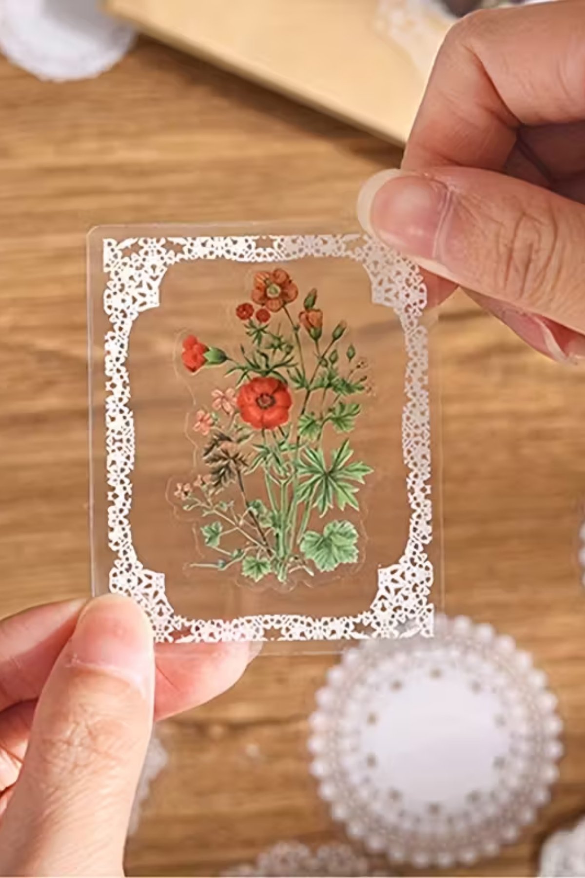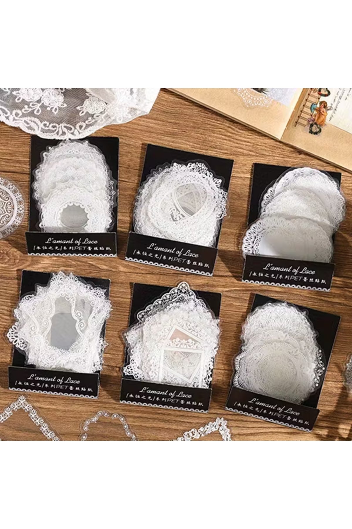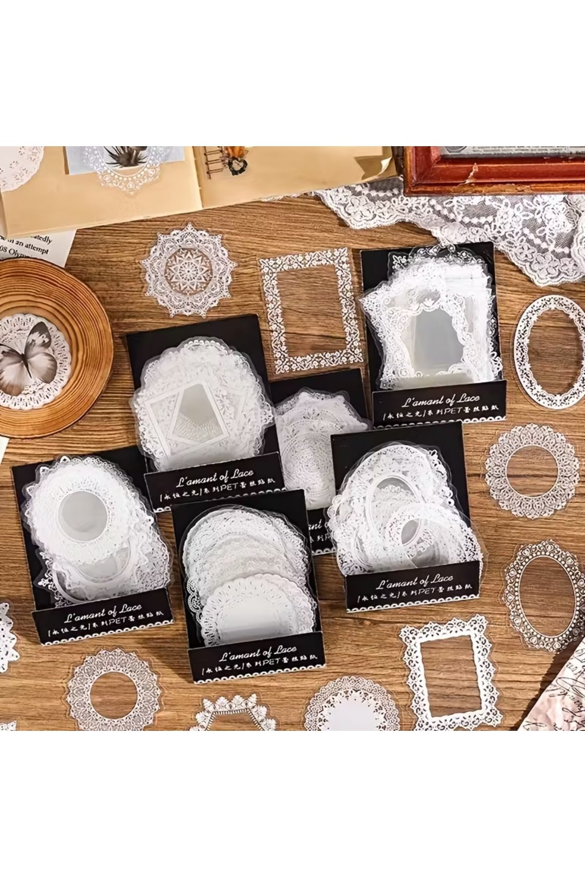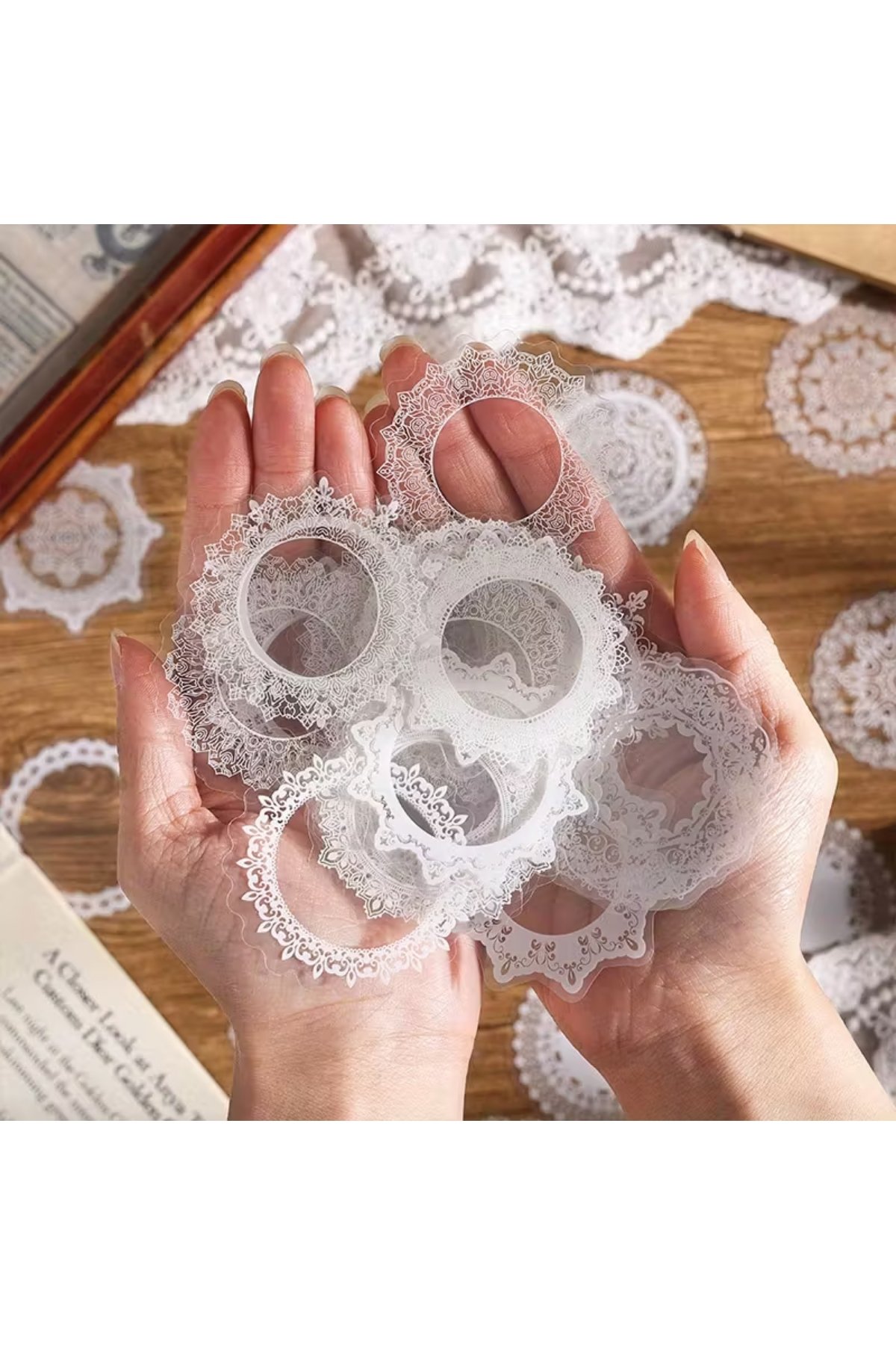 30 Adet Şeffaf Oval Beyaz Dantel Desen Sticker Bullet Journal Scrapbook Laptop Ajanda Planlayıcı