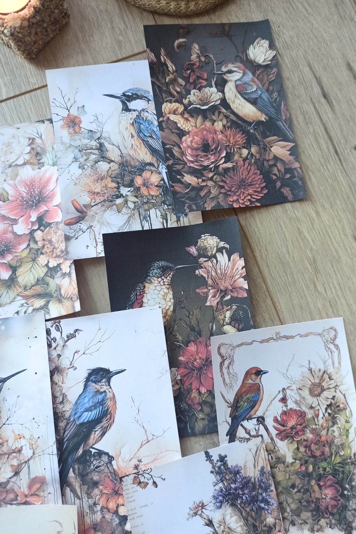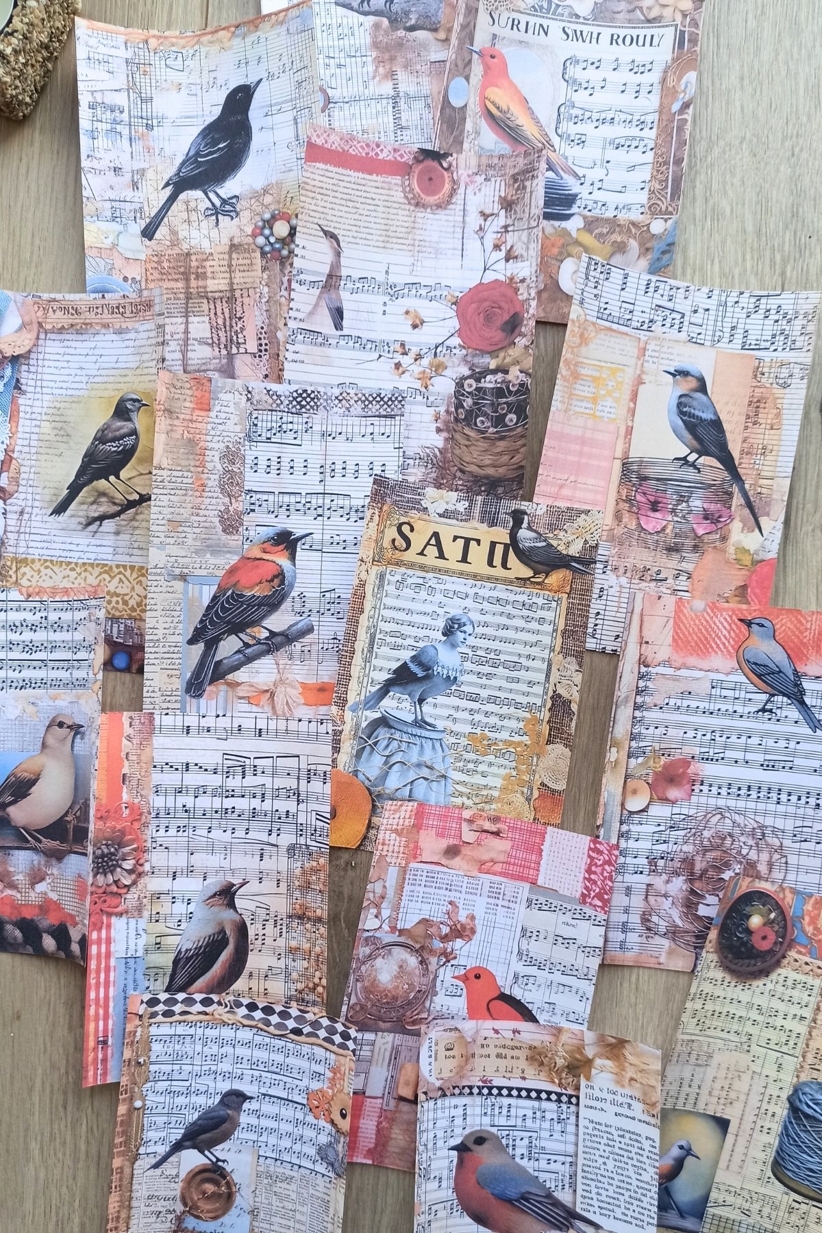 52 adetlik set, kuş temalı desenlerle süslenmiş renkli fotokopi kağıtları içerir