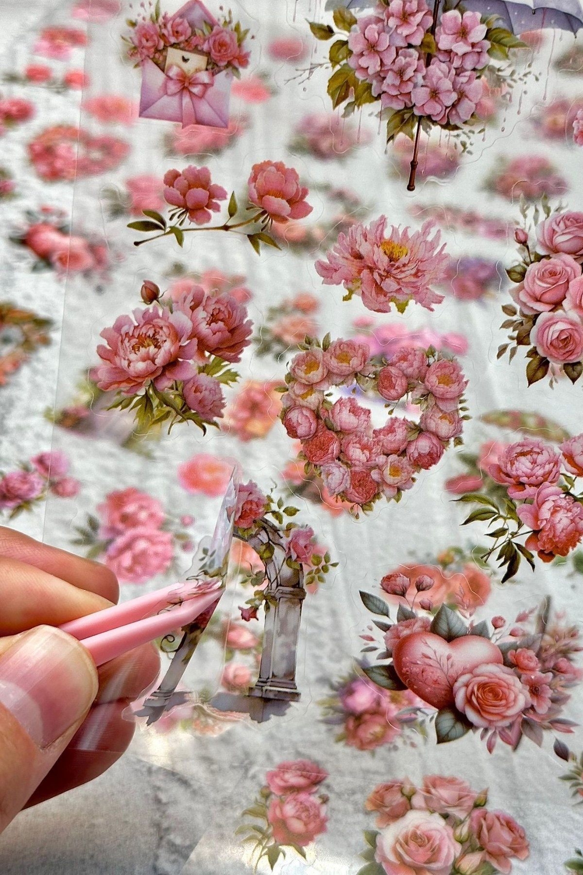 6 Sayfa 74 Adet Şeffaf Pembe Çiçek Sticker Bullet Journal Scrapbook Laptop Ajanda Planlayıcı