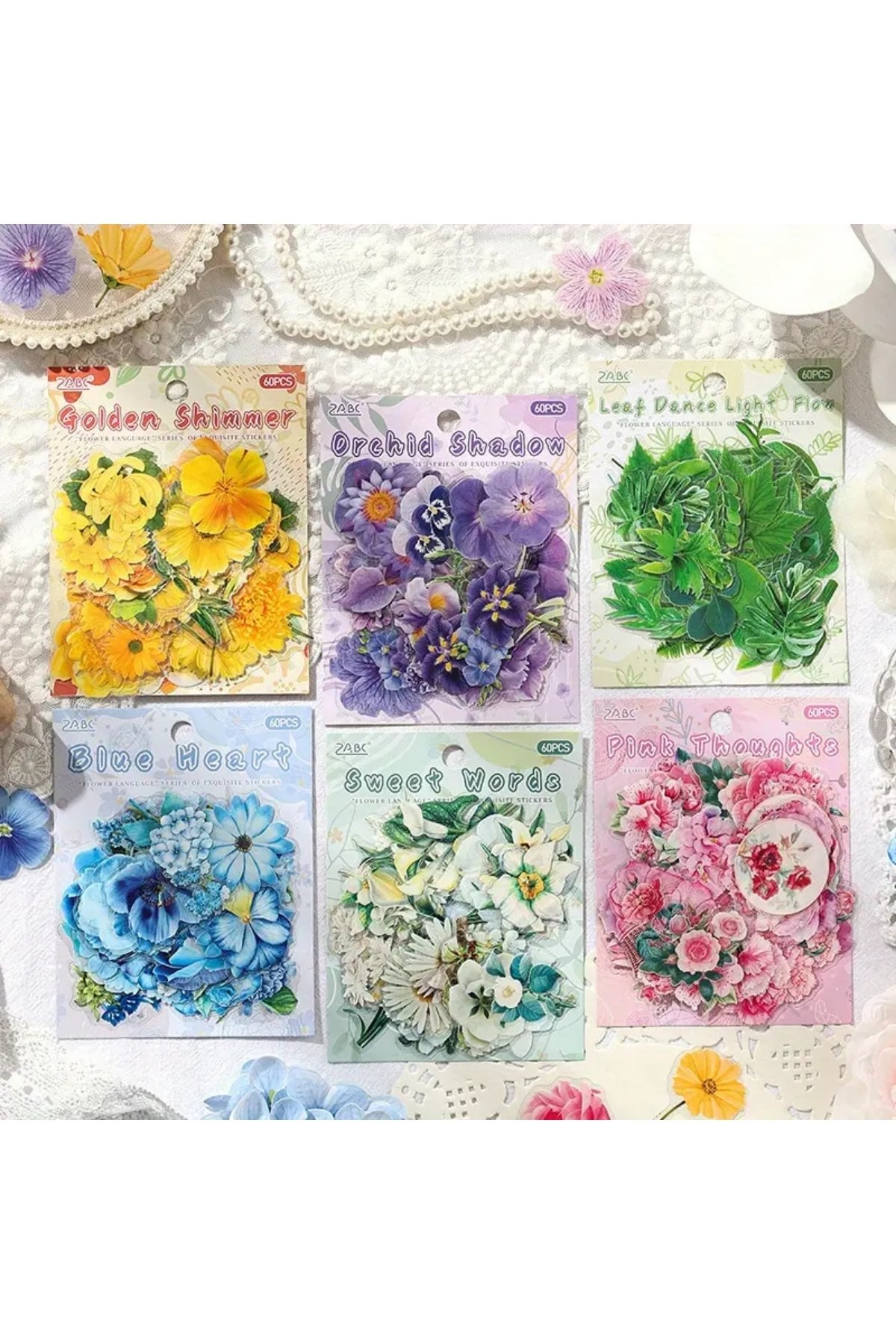 60 Adet Beyaz Şeffaf Çiçek Sticker Seti Bullet Journal Scrapbook Laptop Ajanda Planlayıcı