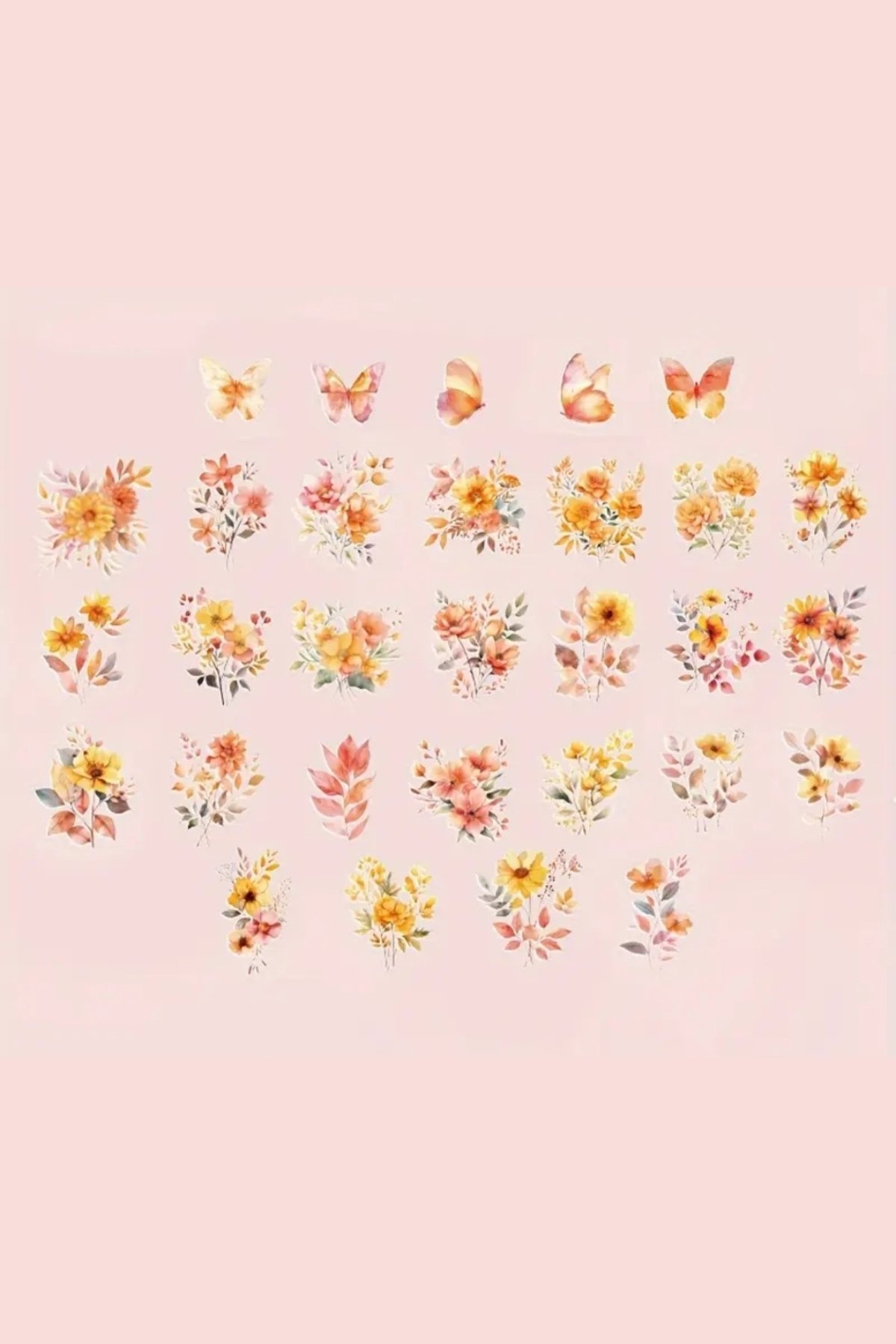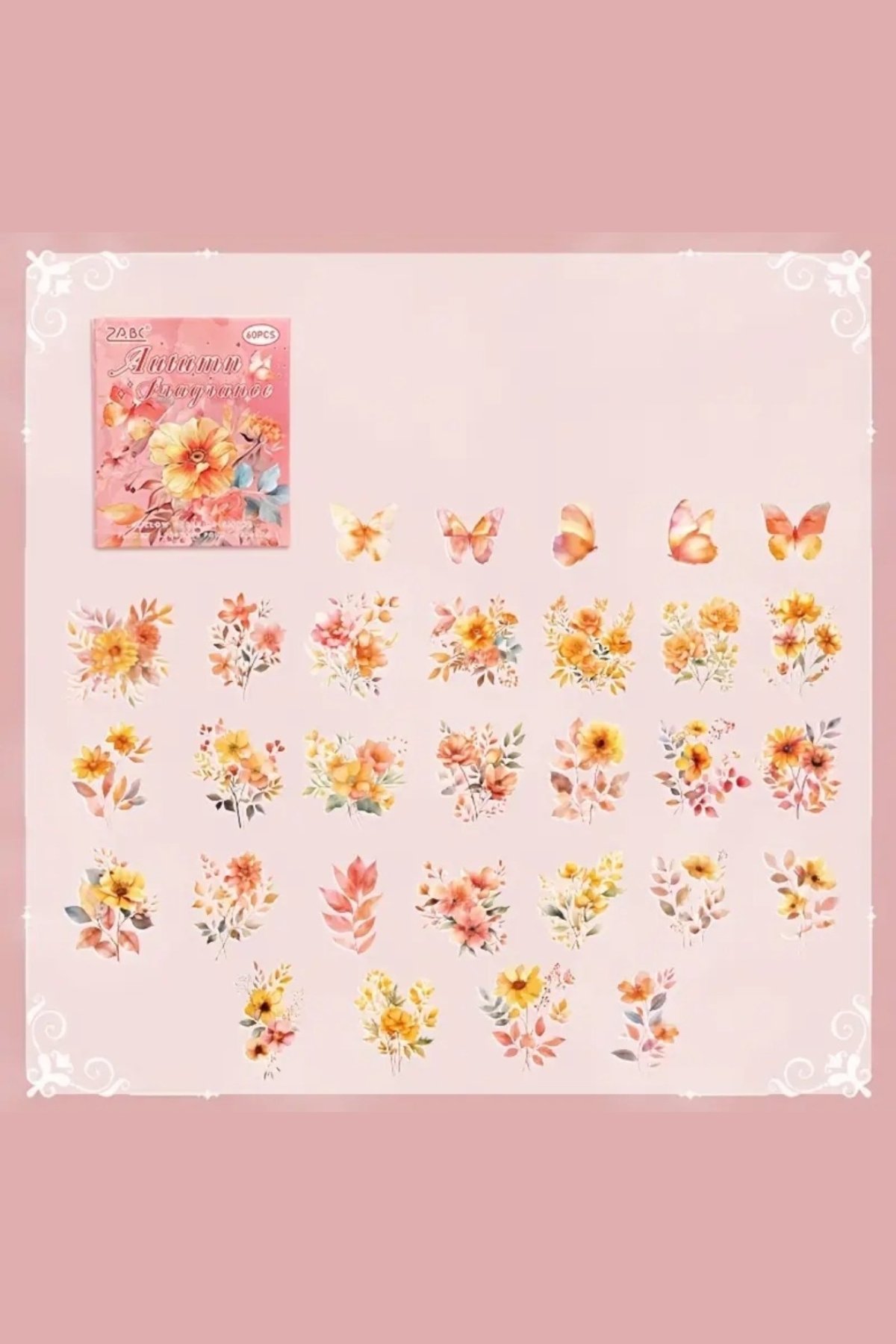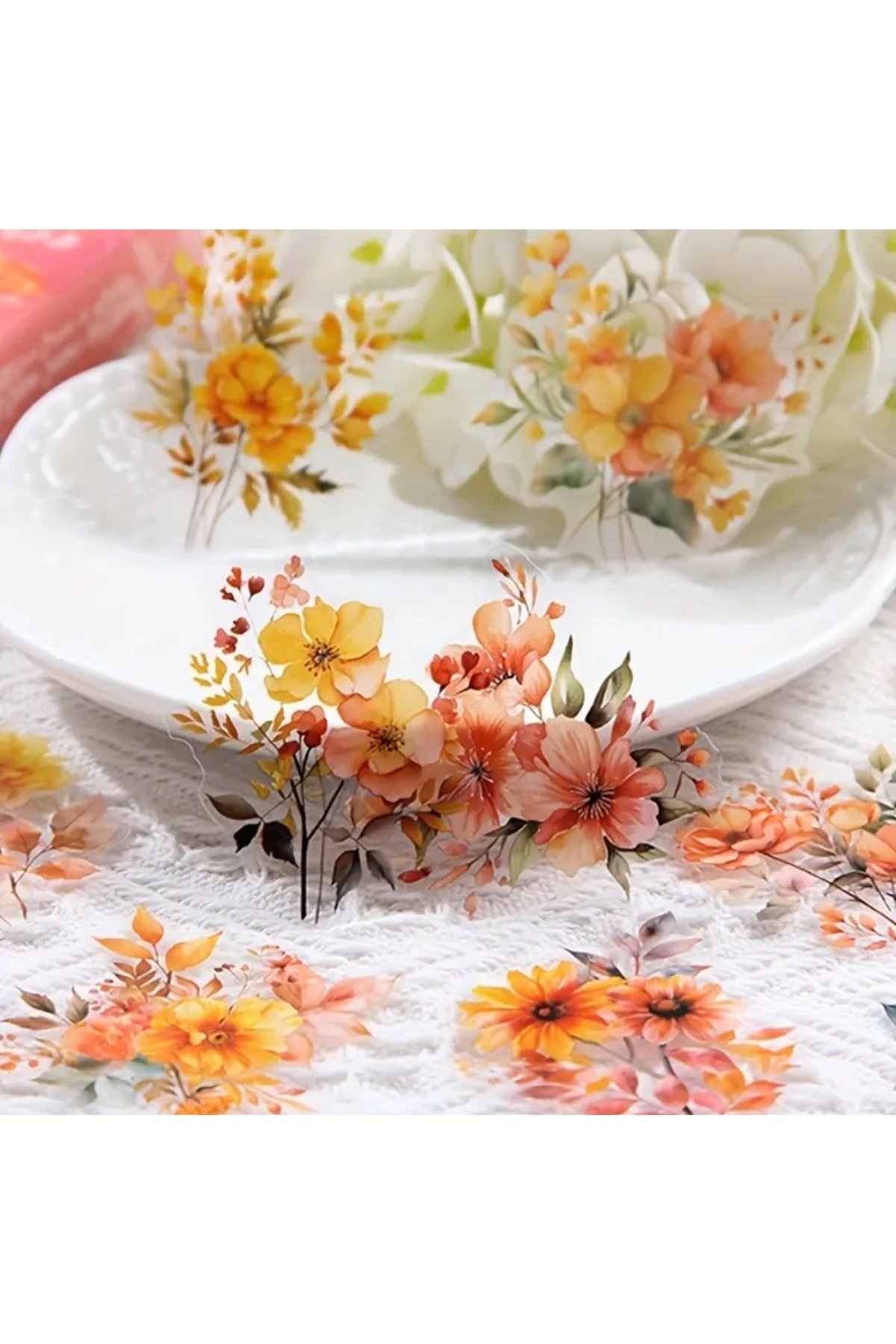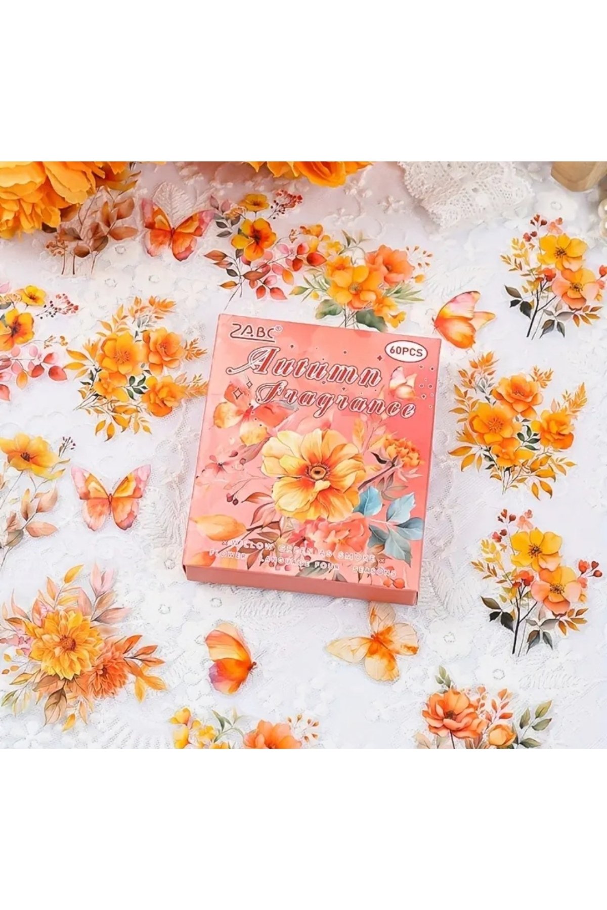 60 Adet Şeffaf Turuncu Çiçek Sticker Bullet Journal Scrapbook Şeffaf Laptop Ajanda Planlayıcı