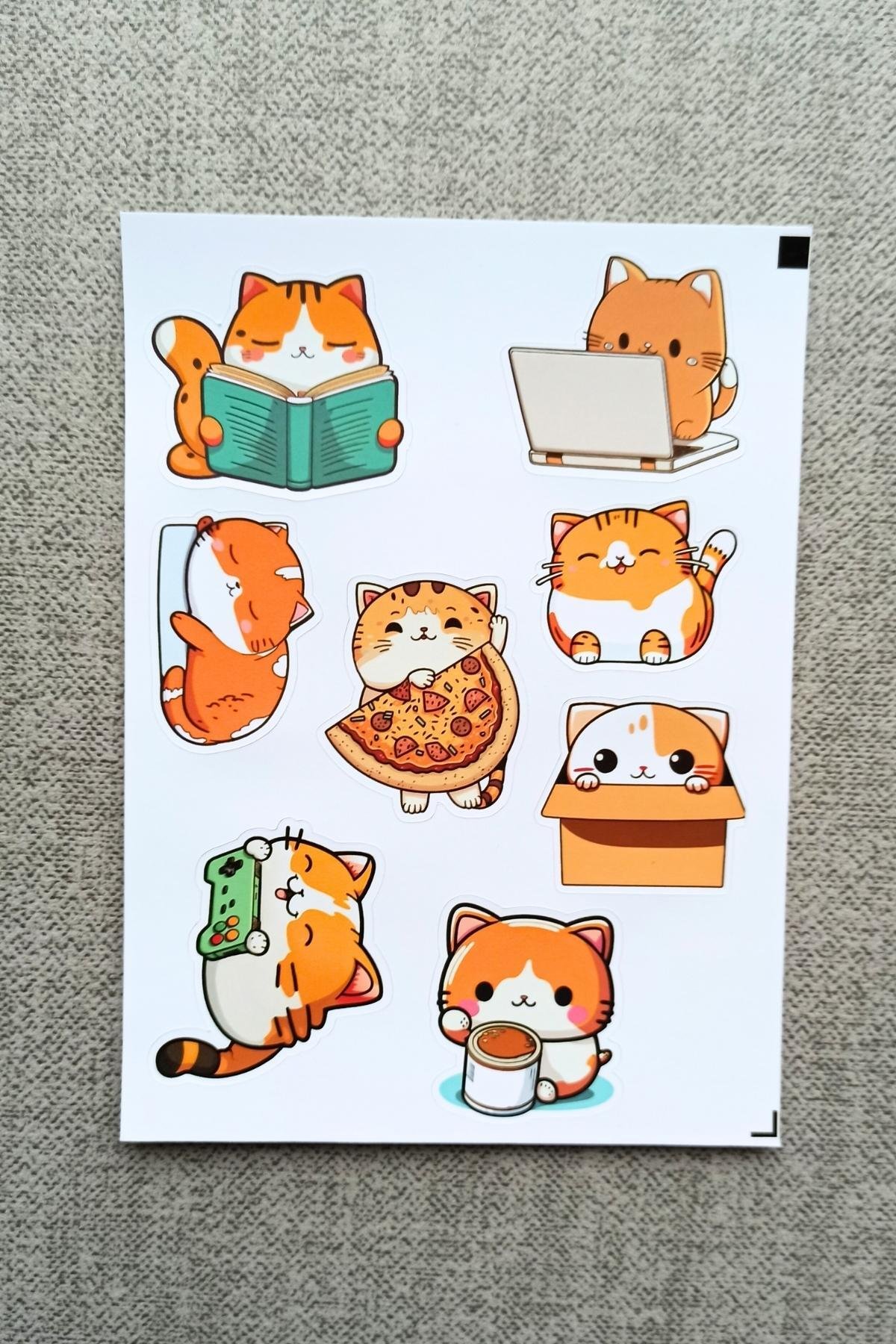 8 Adet Kedi Sticker Seti Kedicik Sticker Sevimli Sticker