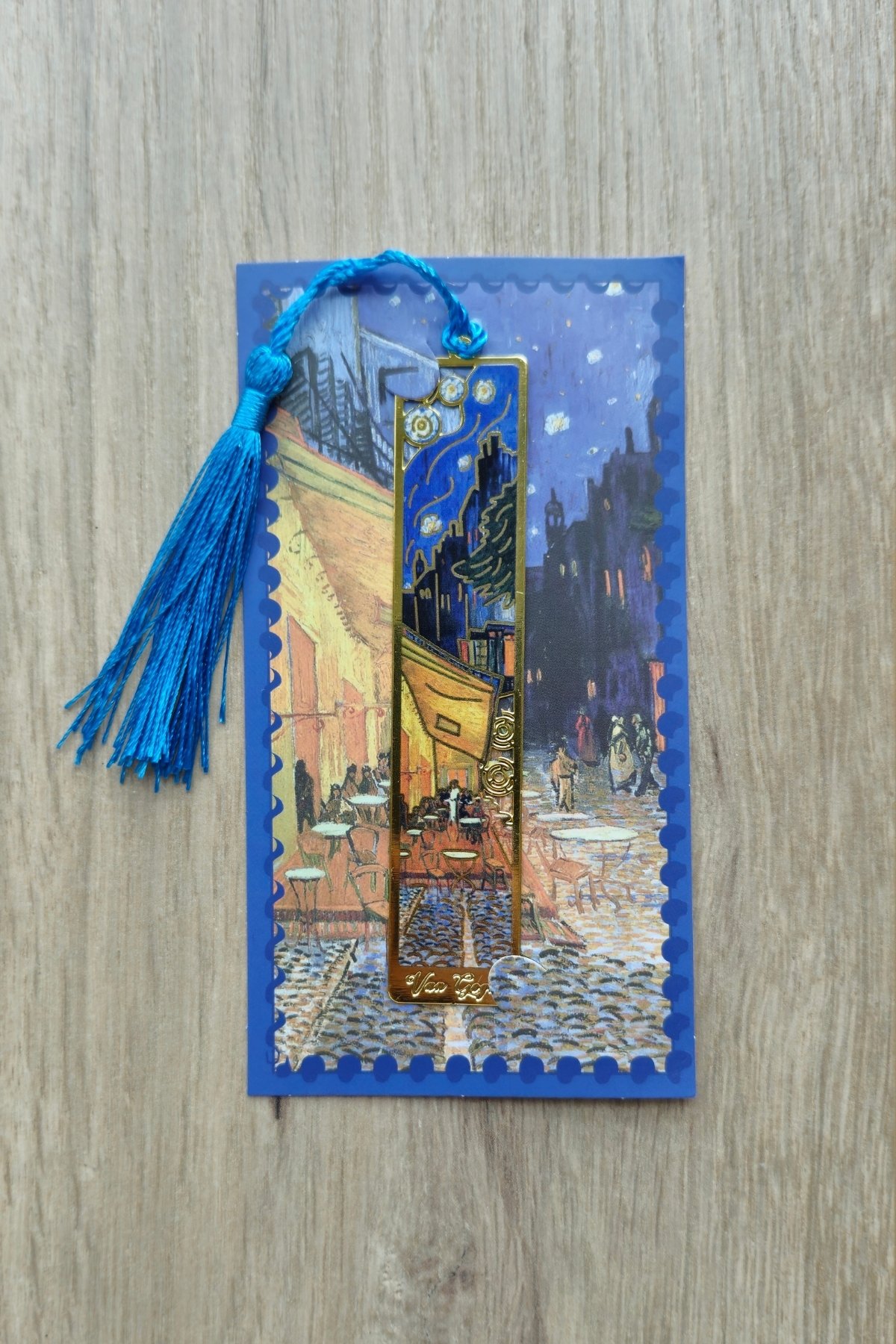 altın hatlarla işlenmiş Kafe Terasta Gece teması taşır