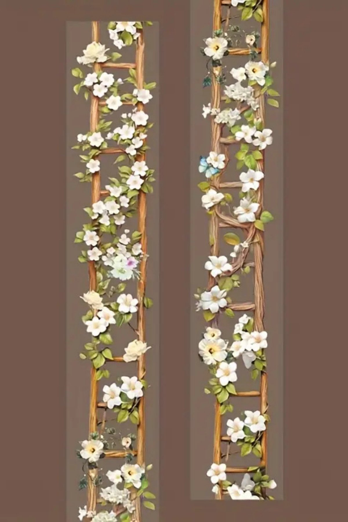 Şeffaf Beyaz Çiçek Merdiven Tema Pet Bant Rulo 4cmx2m Scrapbook Bullet Journal Ajanda Washi Tape
