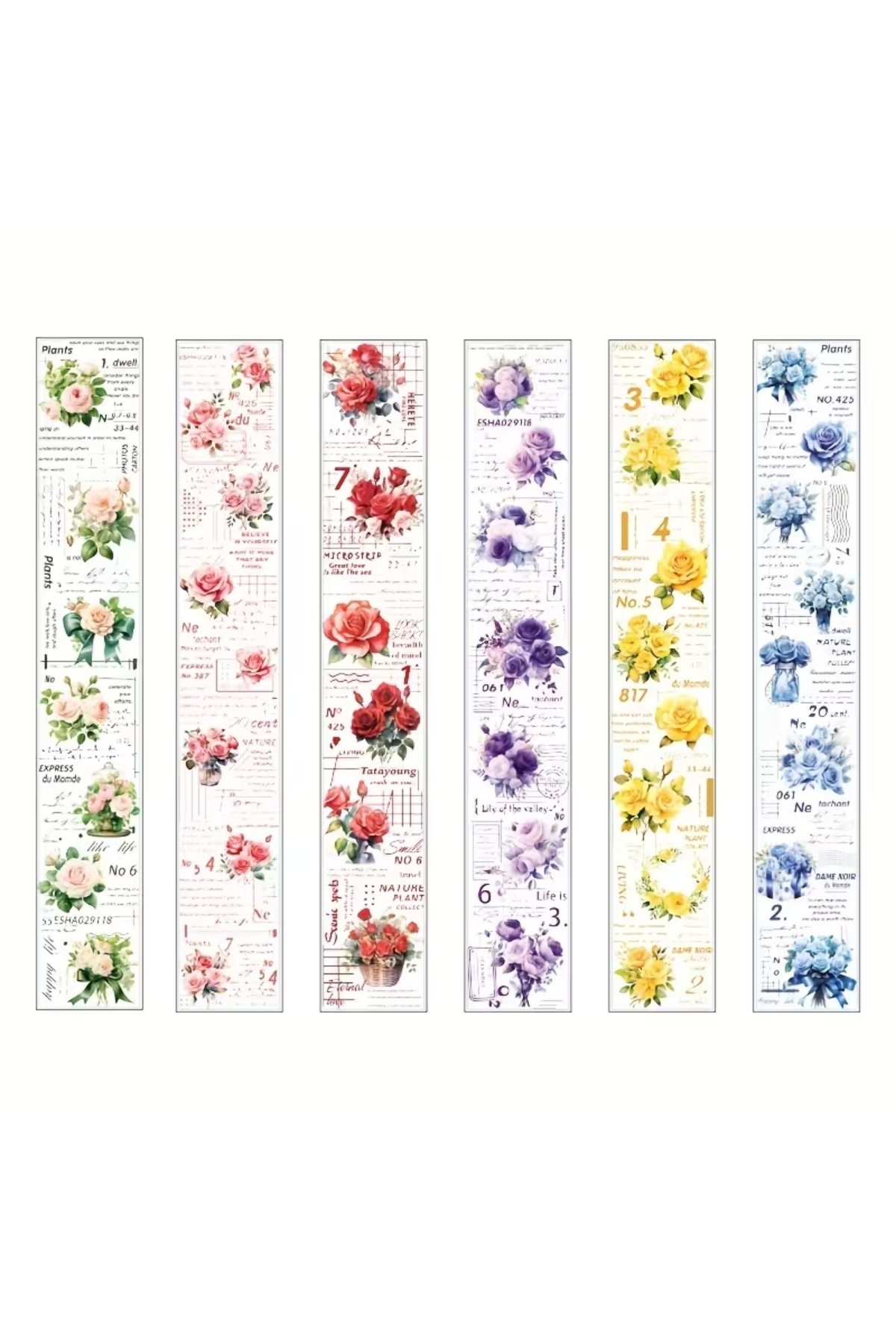 Şeffaf Çiçek Sticker 6cm x 35cm Rastgele 1 Döngü Scrapbook Bullet Journal Ajanda Washi Tape Renkli