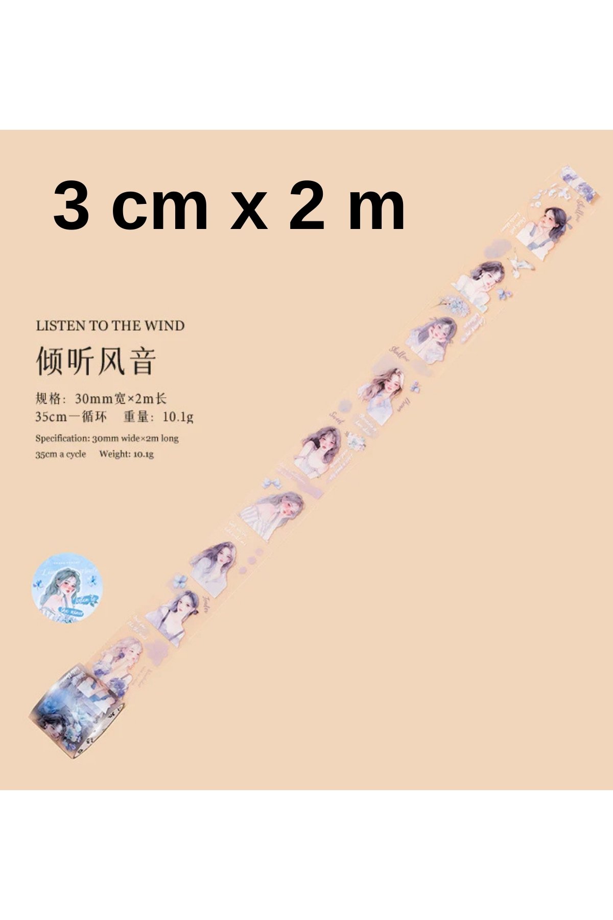 Şeffaf Mavi Kız Bant Rulo 3cmx2m Scrapbook Bullet Journal Ajanda Washi Tape