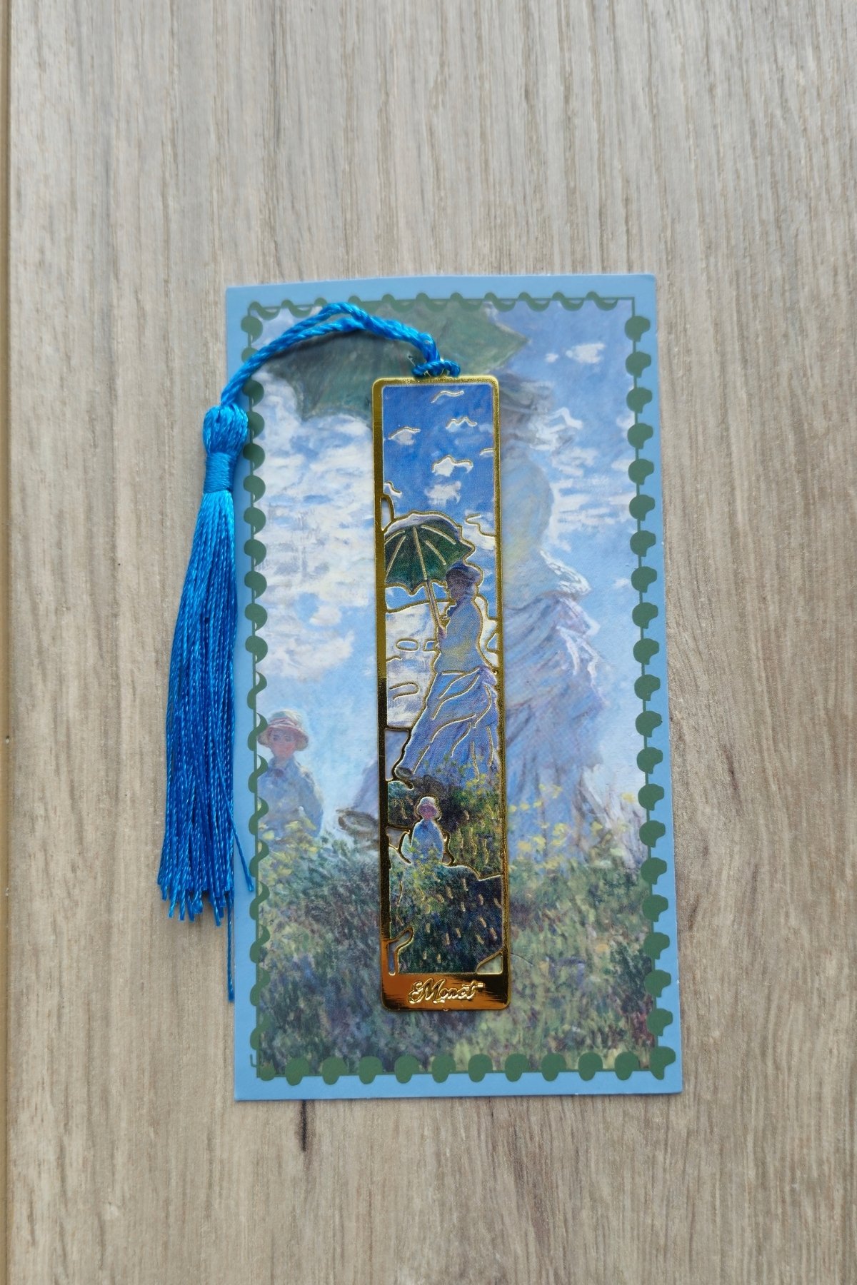Şemsiyeli Kadın Claude Monet Püsküllü Altın Renk Metal Kitap Ayracı Hediyelik Sanatsal