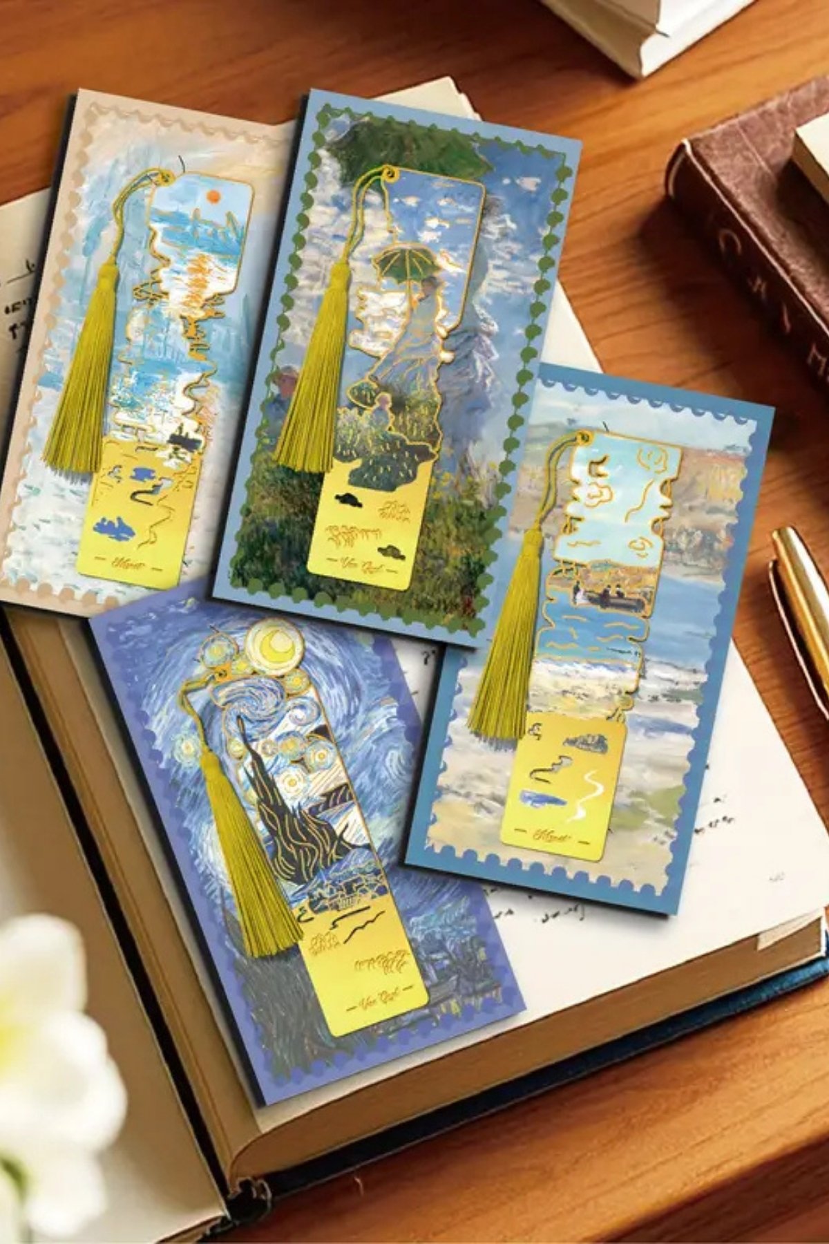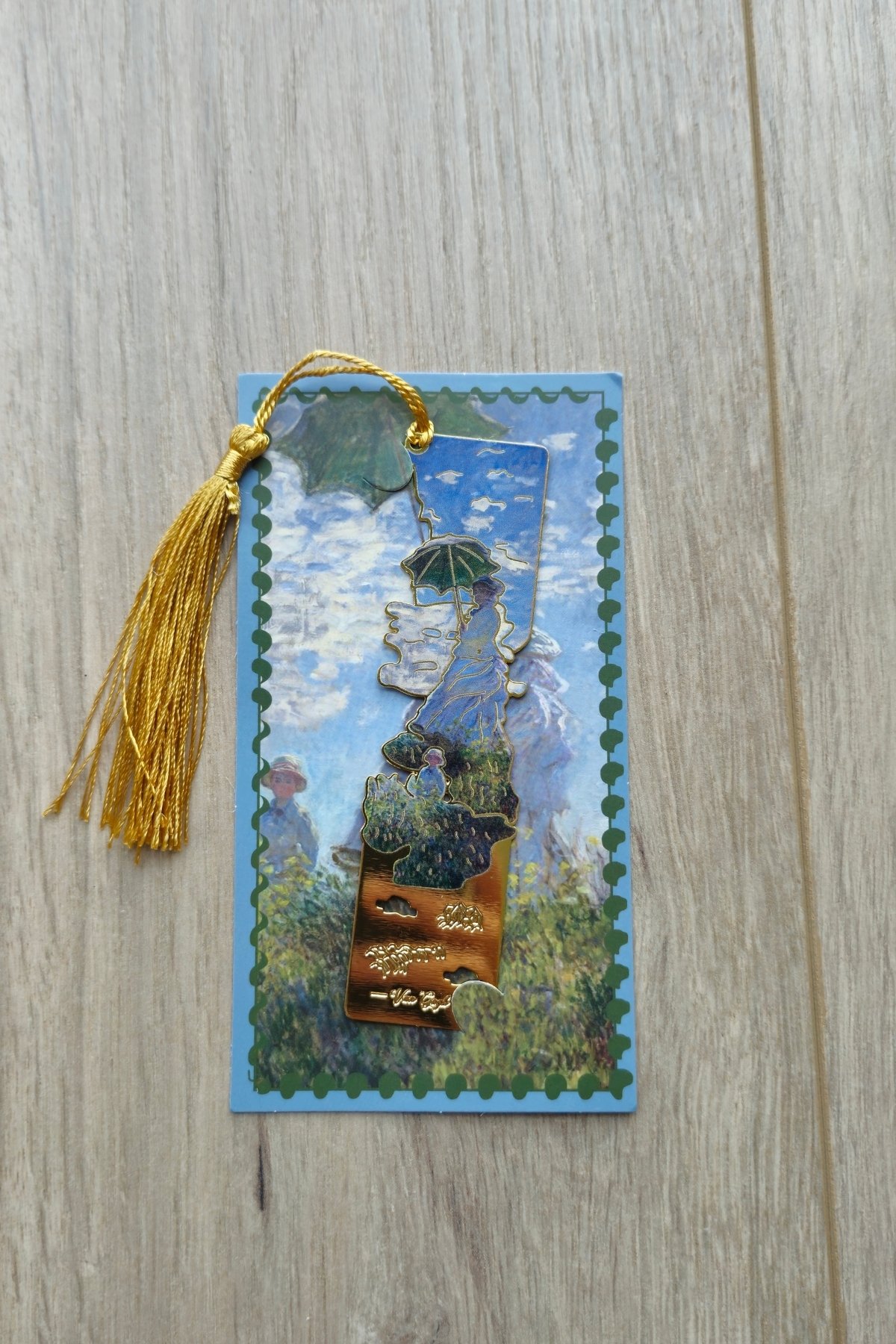 Şemsiyeli Kadın Claude Monet Püsküllü Altın Renk Metal Kitap Ayracı Hediyelik Sanatsal
